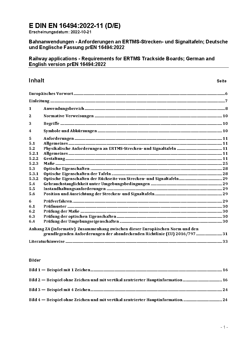 Railway applications - Requirements for ERTMS Trackside Boards; German version prEN 16494:2012