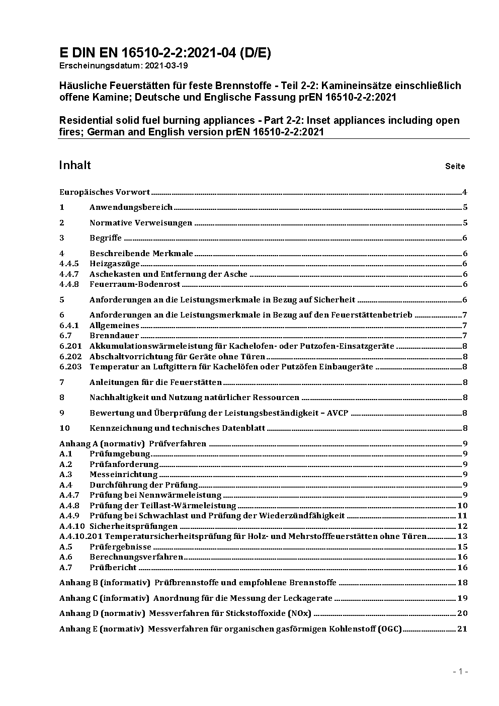 Häusliche Heizgeräte für feste Brennstoffe - Teil 2-2: Kamineinsätze einschließlich offene Kamine; Deutsche Fassung prEN 16510-2-2:2013 / Achtung: Gilt in Verbindung mit DIN EN 16510-1 (2013-02)