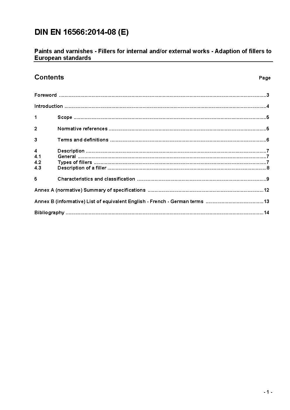 Paints and varnishes - Fillers for internal and/or external works - Adaption of fillers to European standards; German version EN 16566:2014
