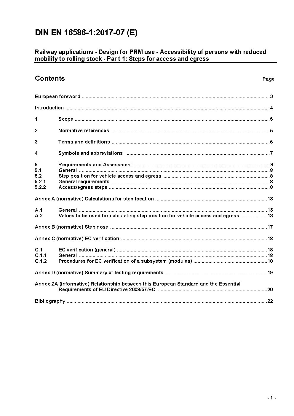Railway applications - Design for PRM use - Accessibility of persons with reduced mobility to rolling stock - Part 1: Steps for access and egress; German version EN 16586-1:2017