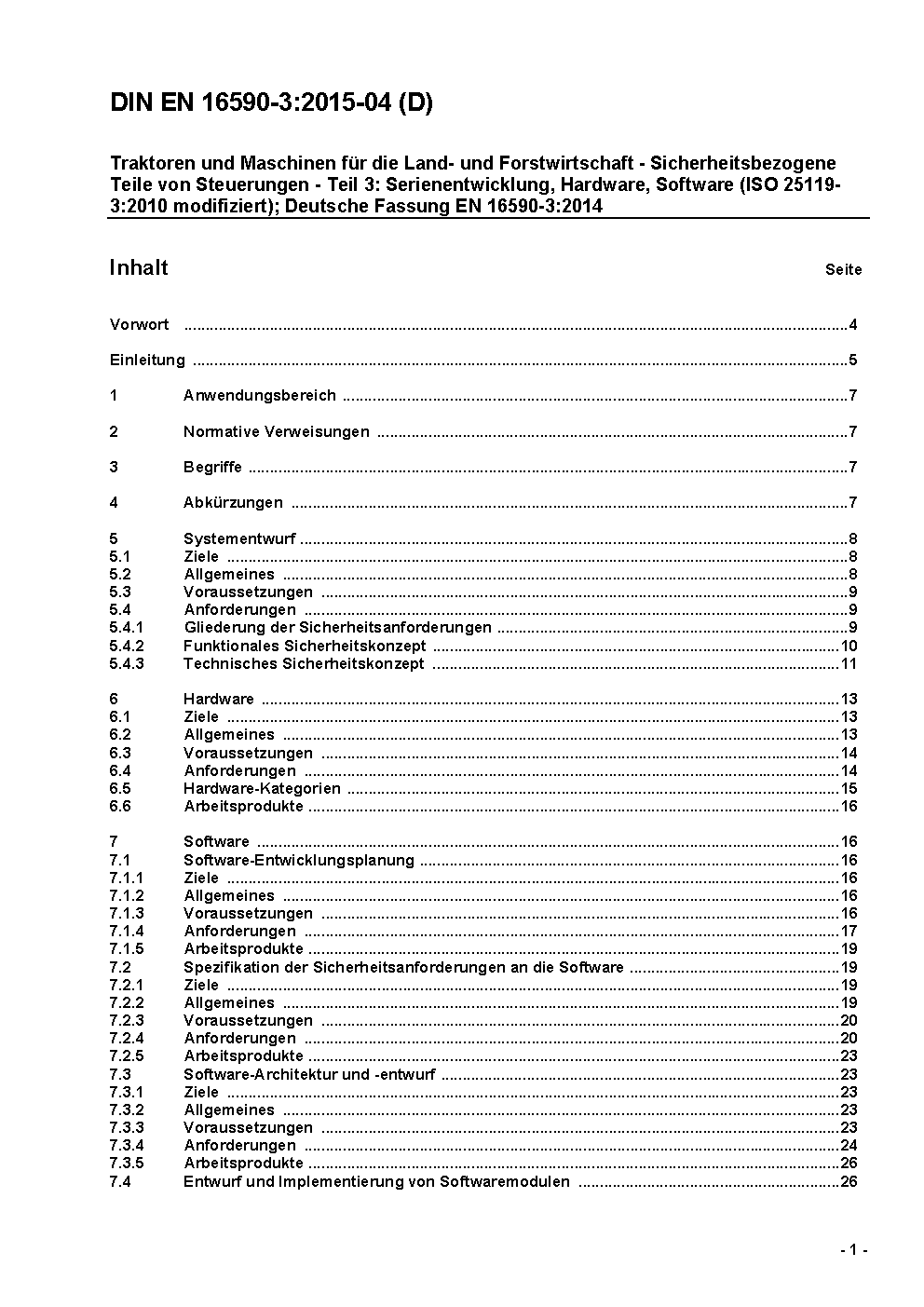 Sicherheit von Land- und Forstmaschinen - Sicherheitsbezogene Teile von Steuerungen - Teil 3: Serienentwicklung, Hardware, Software (ISO 25119-3:2010 modifiziert); Deutsche Fassung FprEN 16590-3:2013