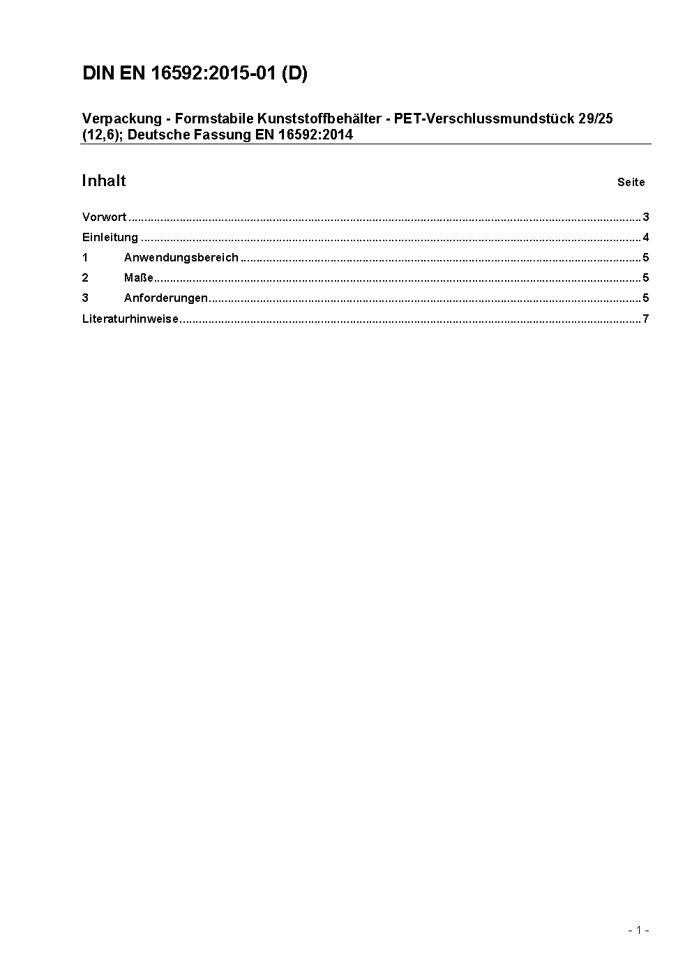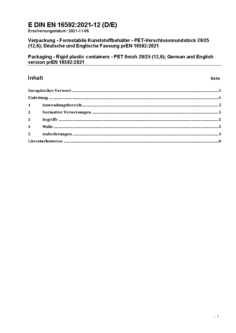 Verpackung - Formstabile Kunststoffbehälter - PET-Verschlussmundstück 29/25 (12,6); Deutsche Fassung EN 16592:2022