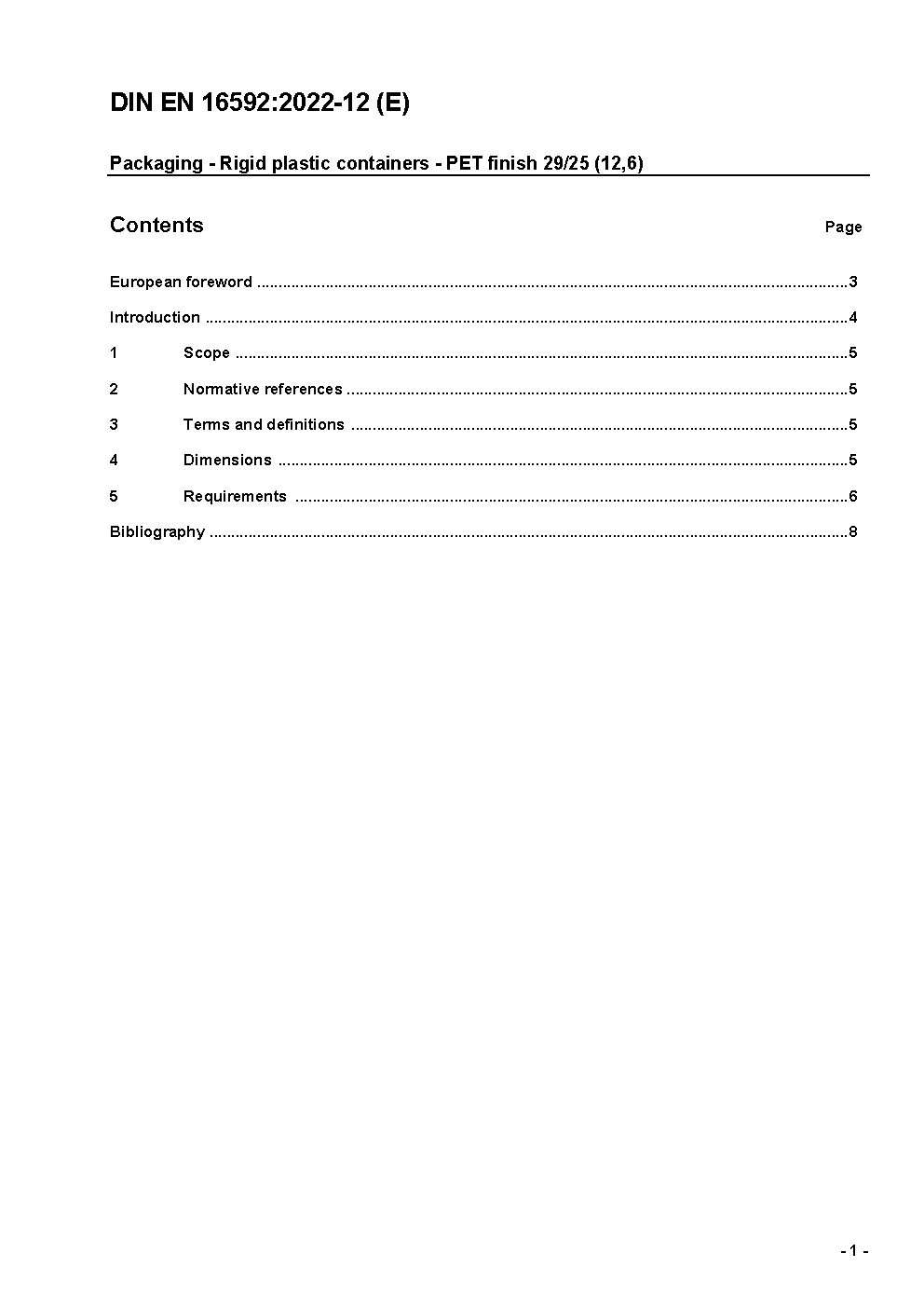 Packaging - Rigid plastic containers - PET finish 29/25 (12,6); German version EN 16592:2022