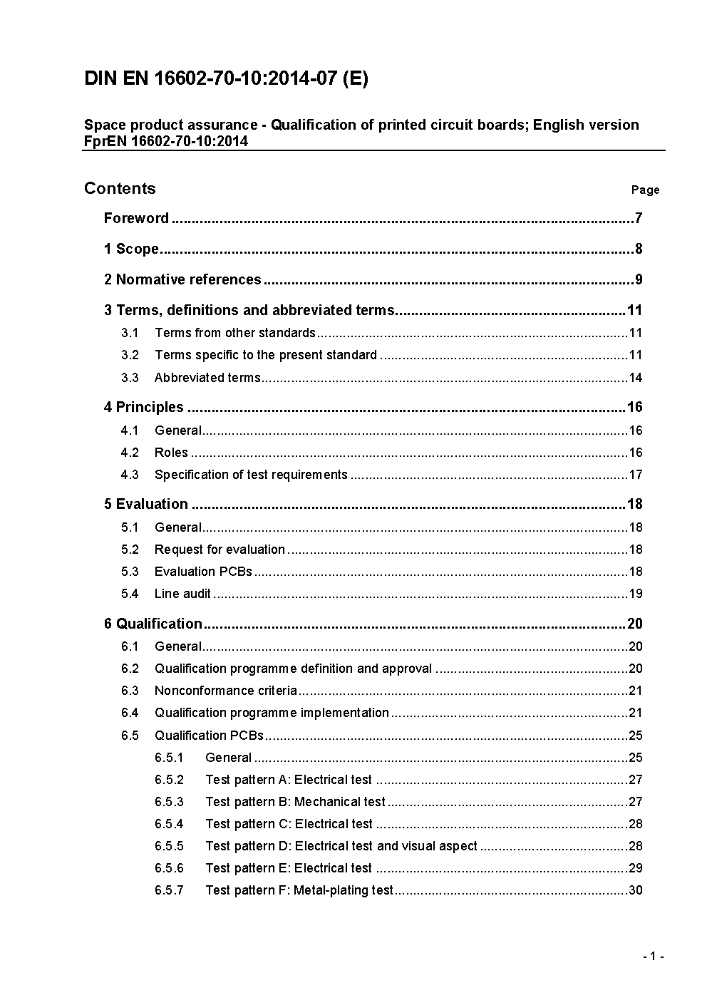 Raumfahrtproduktsicherung - Qualifizierung von Leiterplatten; Englische Fassung FprEN 16602-70-10:2014