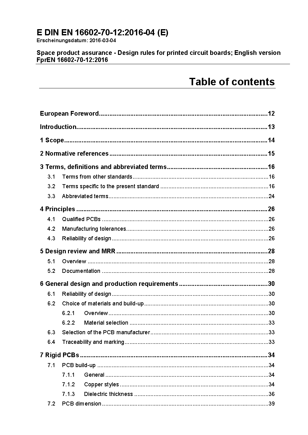 Raumfahrtproduktsicherung - Designregeln für Leiterplatten; Englische Fassung FprEN 16602-70-12:2016