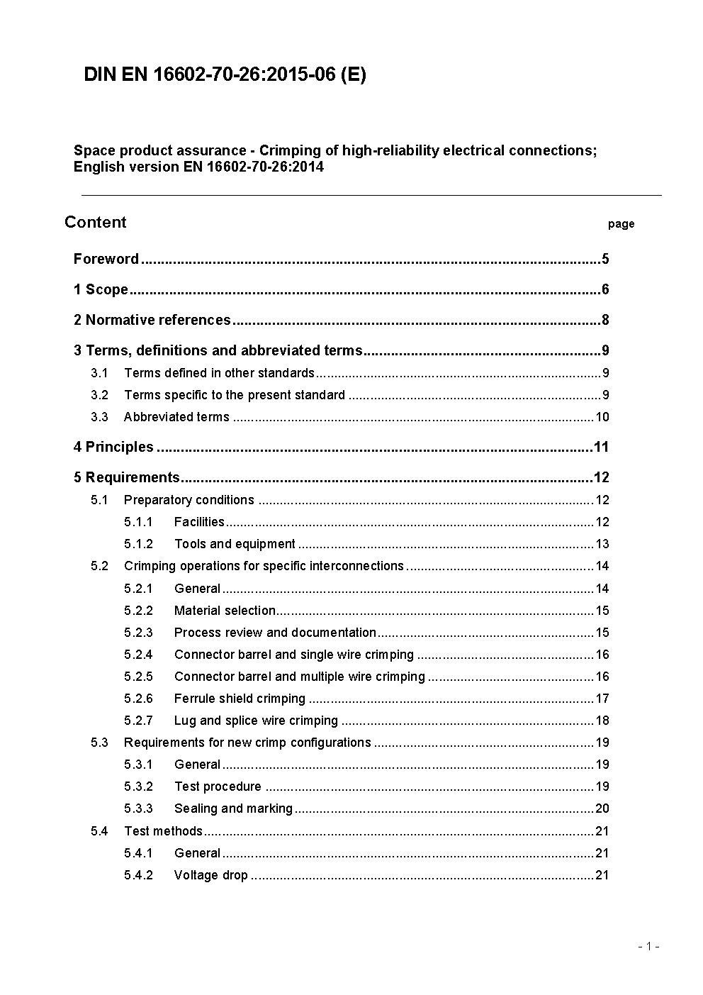 Space product assurance - Crimping of high-reliability electrical connections; English version FprEN 16602-70-26:2013