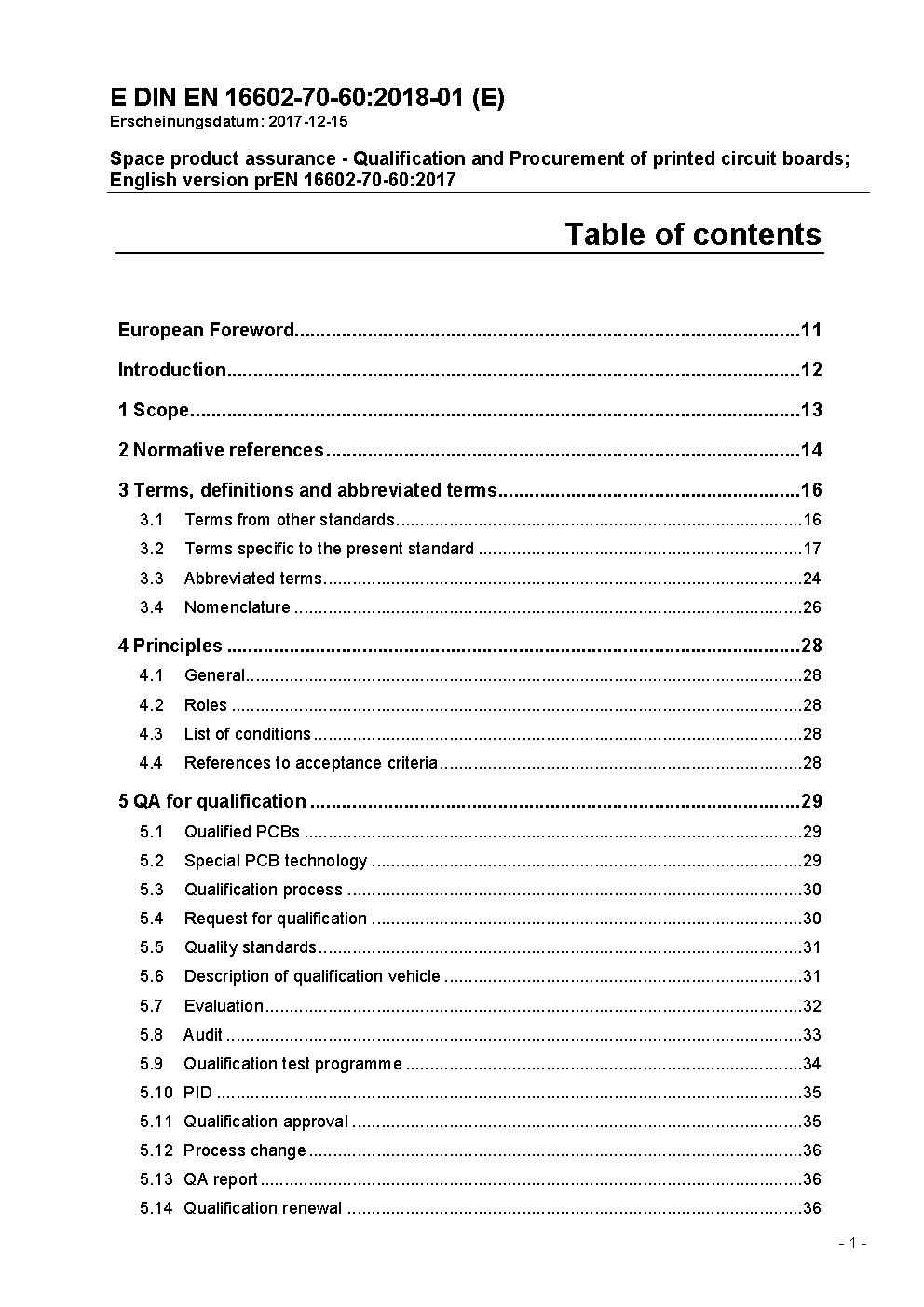 Raumfahrtproduktsicherung - Qualifizierung und Beschaffung von Leiterplatten; Englische Fassung prEN 16602-70-60:2017