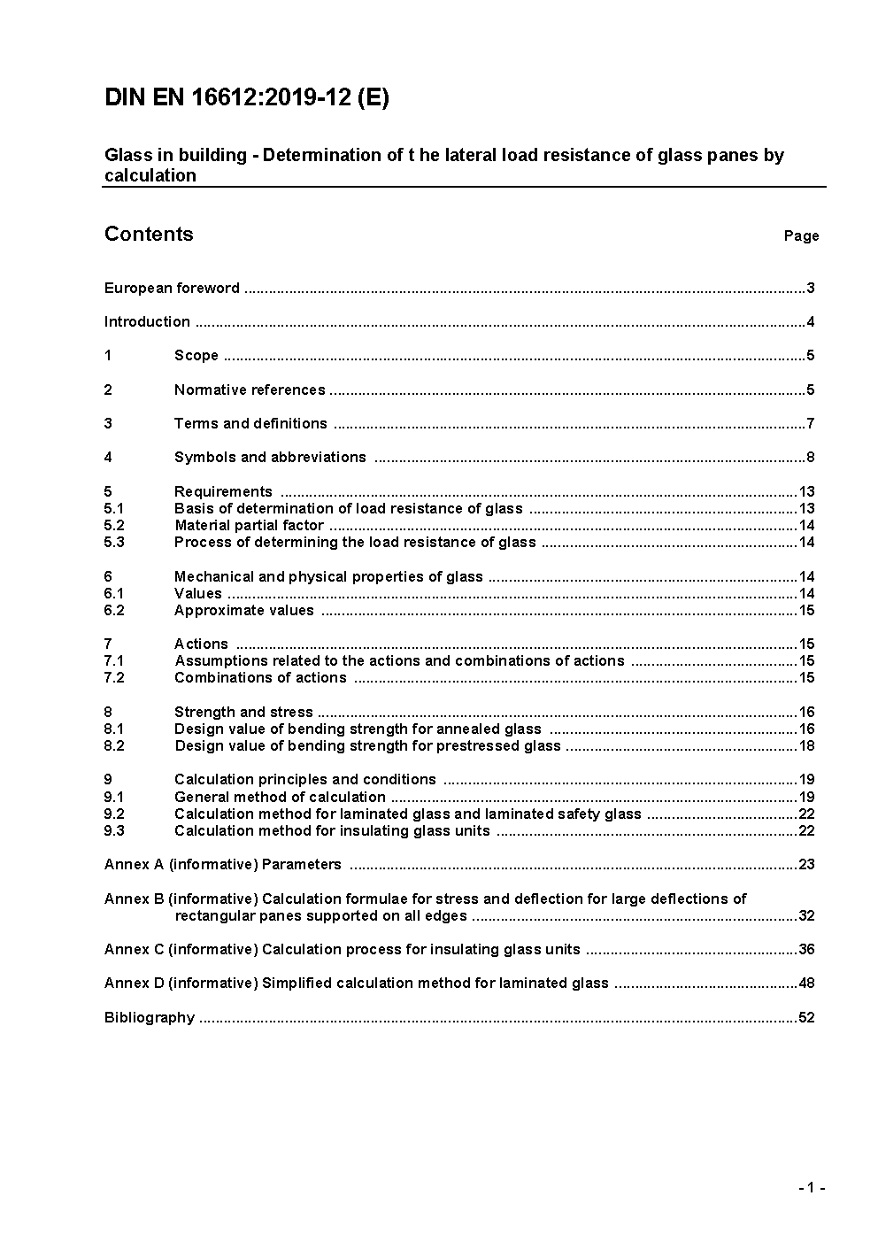 Glass in building - Determination of the lateral load resistance of glass panes by calculation; German and English version prEN 16612:2017
