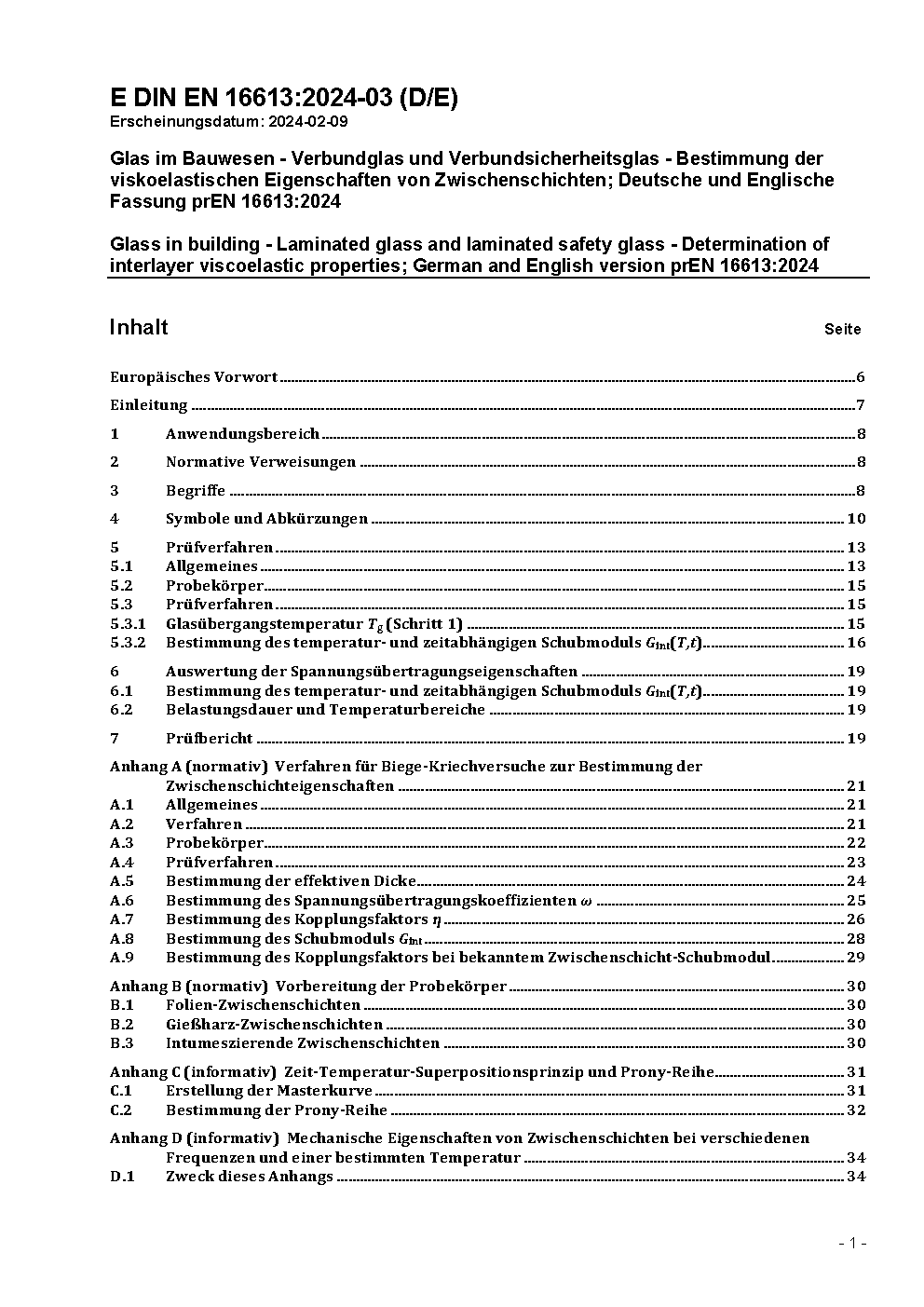Glas im Bauwesen - Verbundglas und Verbundsicherheitsglas - Bestimmung der mechanischen Eigenschaften von Zwischenschichten; Deutsche und Englische Fassung prEN 16613:2017