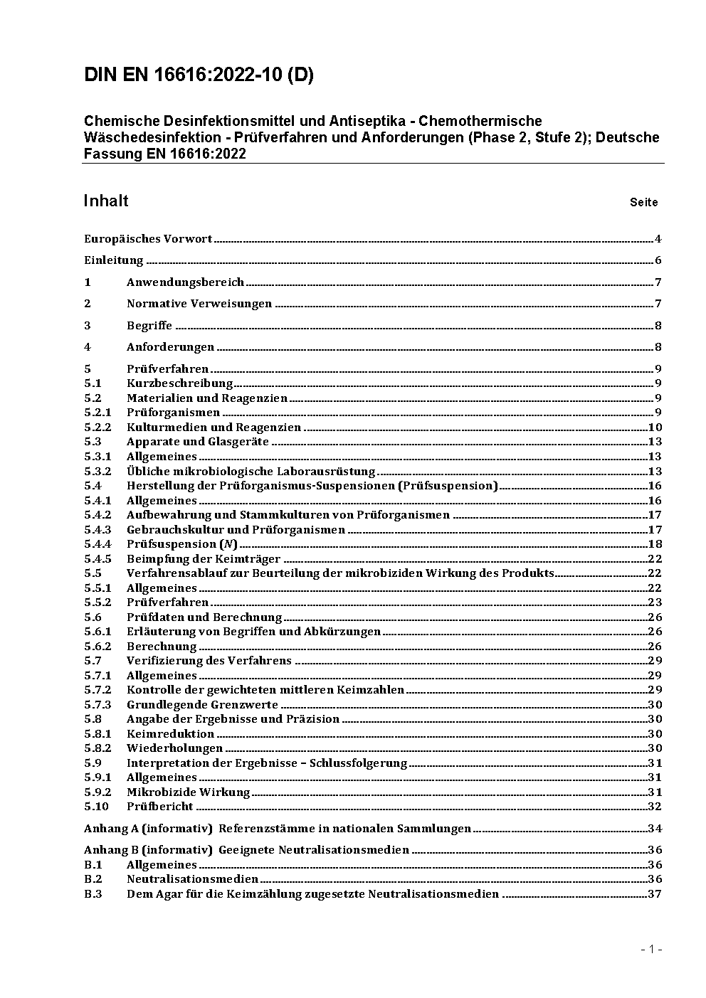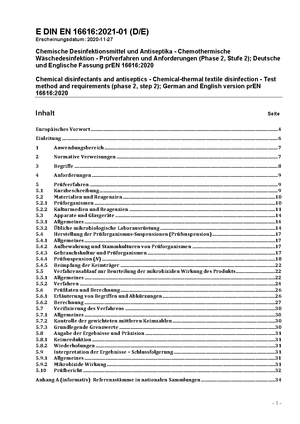 Chemische Desinfektionsmittel und Antiseptika - Chemothermische Wäschedesinfektion - Prüfverfahren und Anforderungen (Phase 2, Stufe 2); Deutsche Fassung prEN 16616:2013