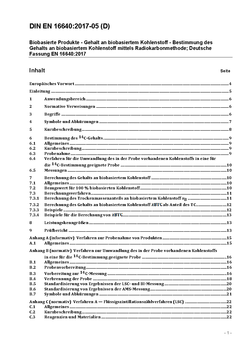 Biobasierte Produkte - Gehalt an biobasiertem Kohlenstoff - Bestimmung des Gehalts an biobasiertem Kohlenstoff mittels Radiokarbonmethode; Deutsche und Englische Fassung prEN 16640:2025
