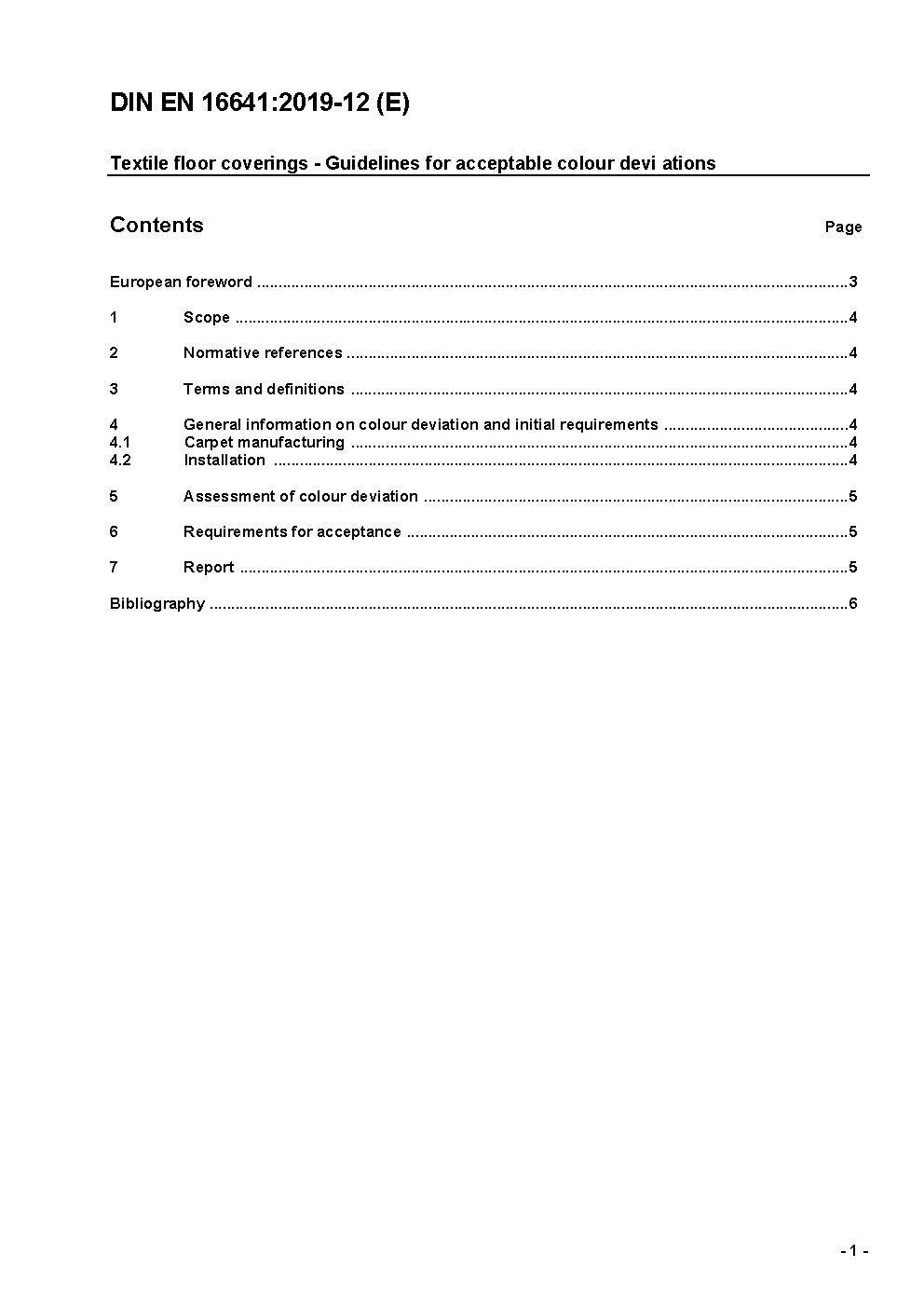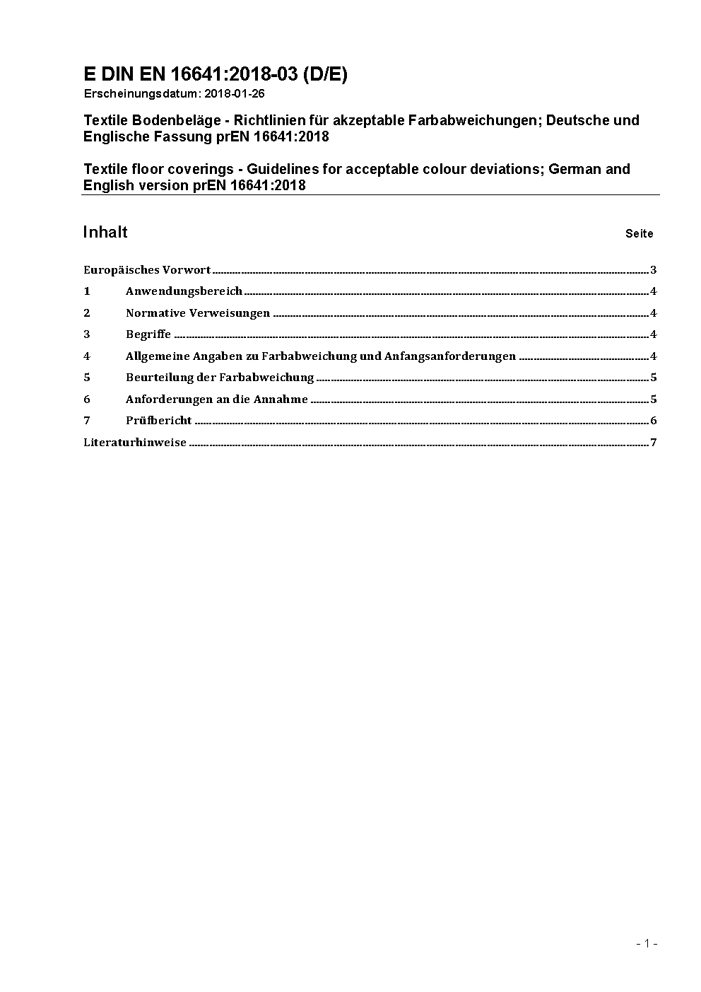 Textile Bodenbeläge - Richtlinien für akzeptable Farbabweichungen; Deutsche und Englische Fassung prEN 16641:2018