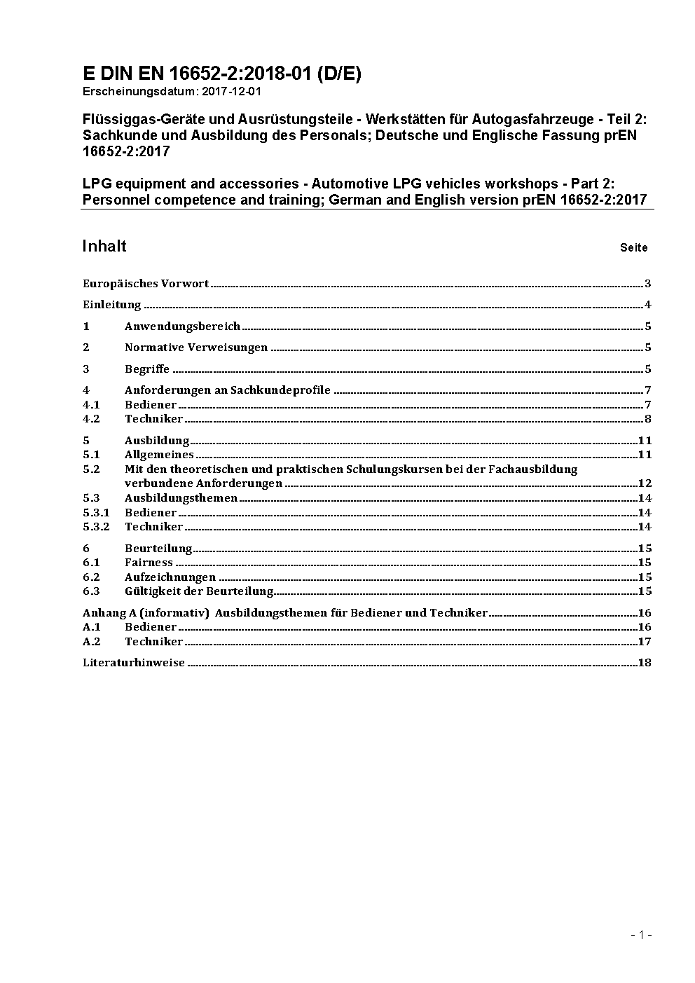 Flüssiggas-Geräte und Ausrüstungsteile - Werkstätten für Autogasfahrzeuge - Teil 2: Sachkunde und Ausbildung des Personals; Deutsche und Englische Fassung prEN 16652-2:2017