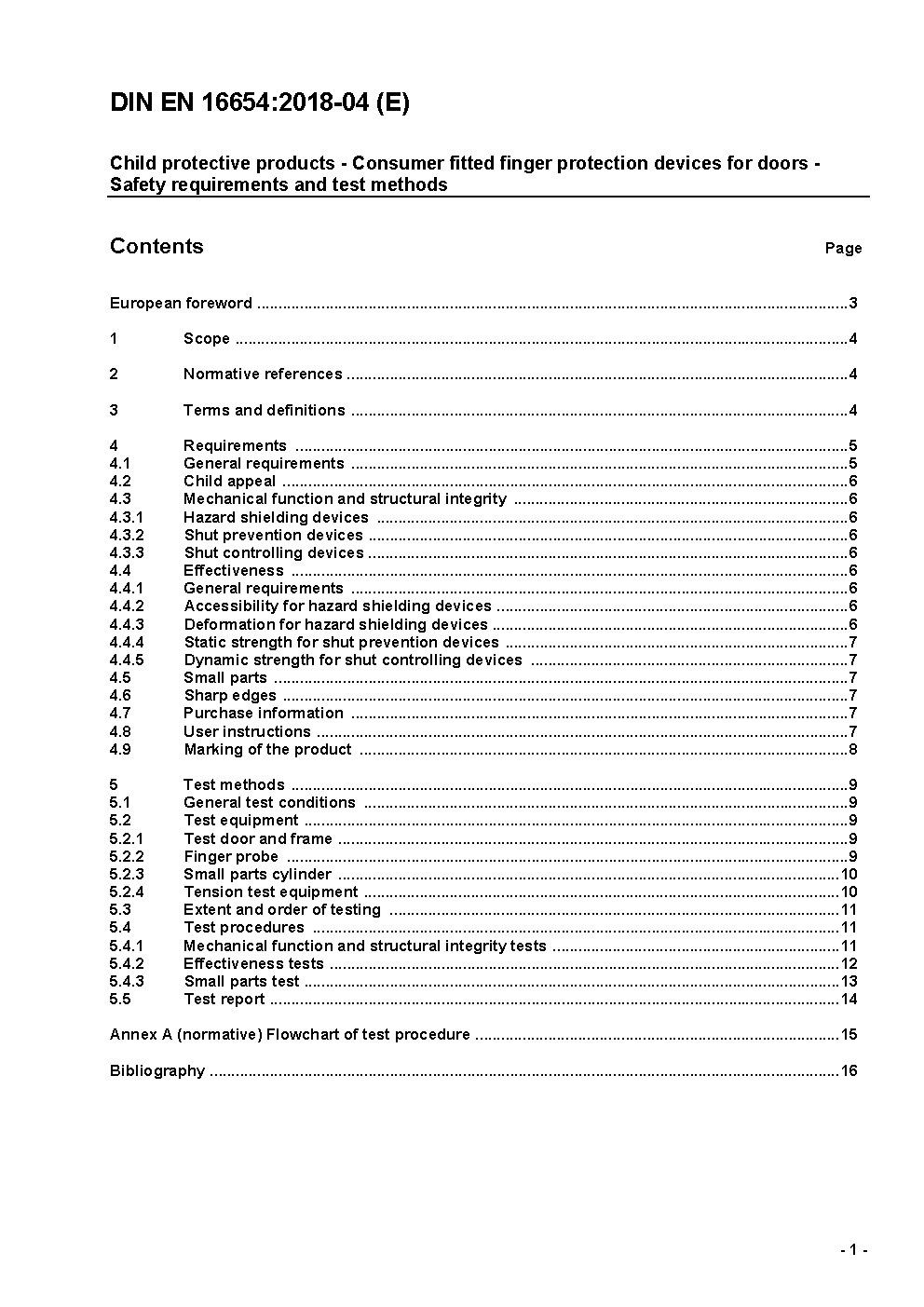 Kinderschutzprodukte - Vom Verbraucher anzubringende Fingerschutzvorrichtungen für Türen - Sicherheitstechnische Anforderungen und Prüfverfahren; Deutsche Fassung EN 16654:2015
