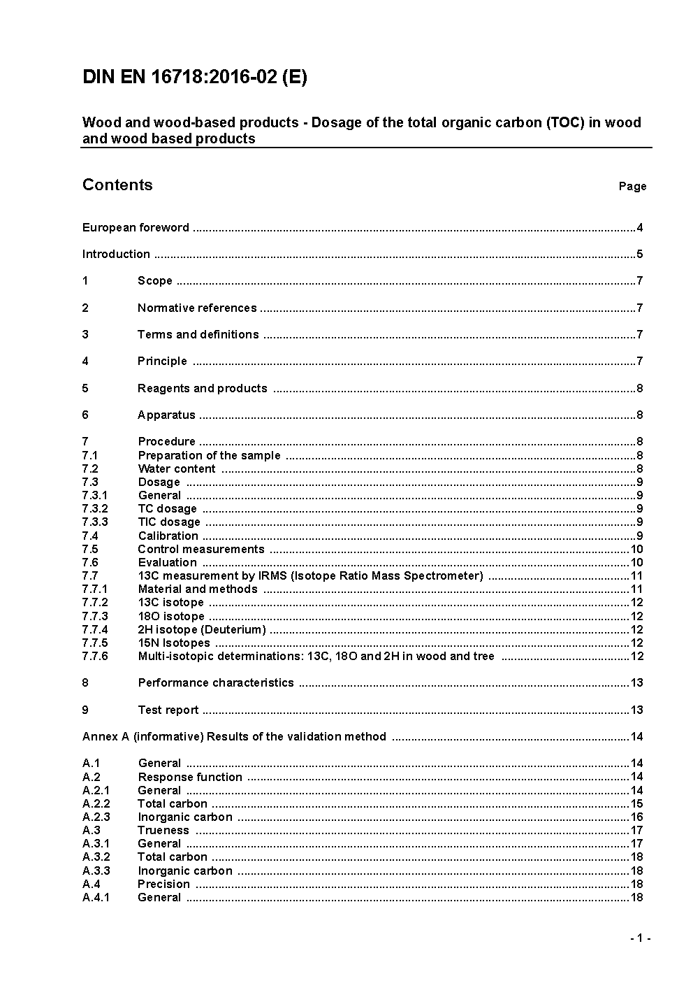 Wood and wood-based products - Dosage of the total organic carbon (TOC) in wood and wood based products; German version EN 16718:2015