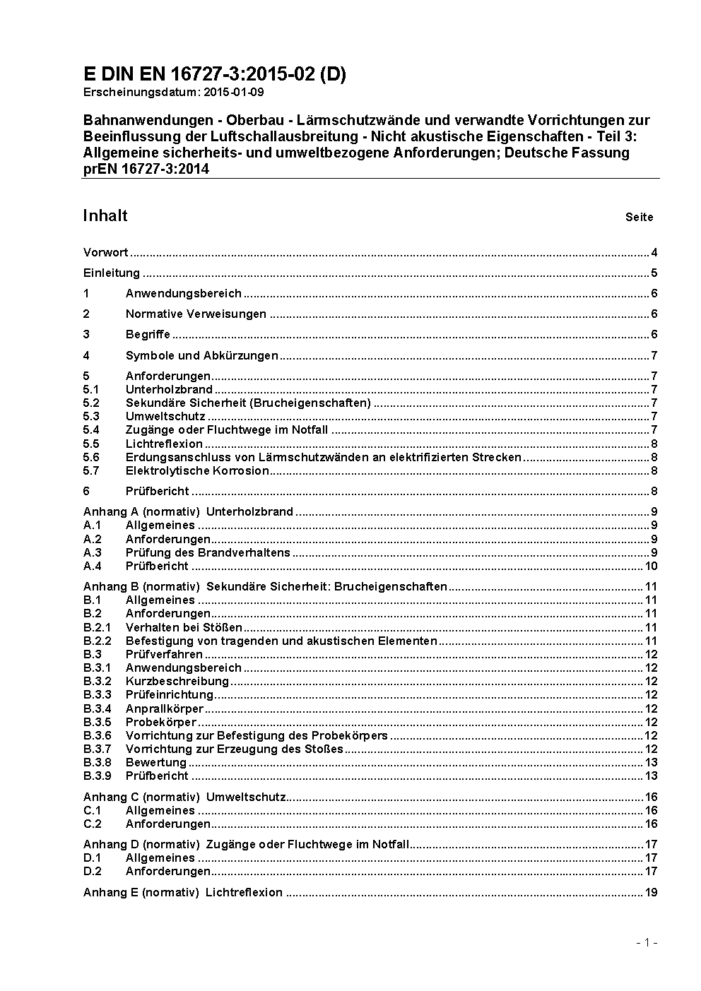Bahnanwendungen - Oberbau - Lärmschutzwände und verwandte Vorrichtungen zur Beeinflussung der Luftschallausbreitung - Nicht akustische Eigenschaften - Teil 3: Allgemeine sicherheits- und umweltbezogene Anforderungen; Deutsche Fassung EN 16727-3:2017