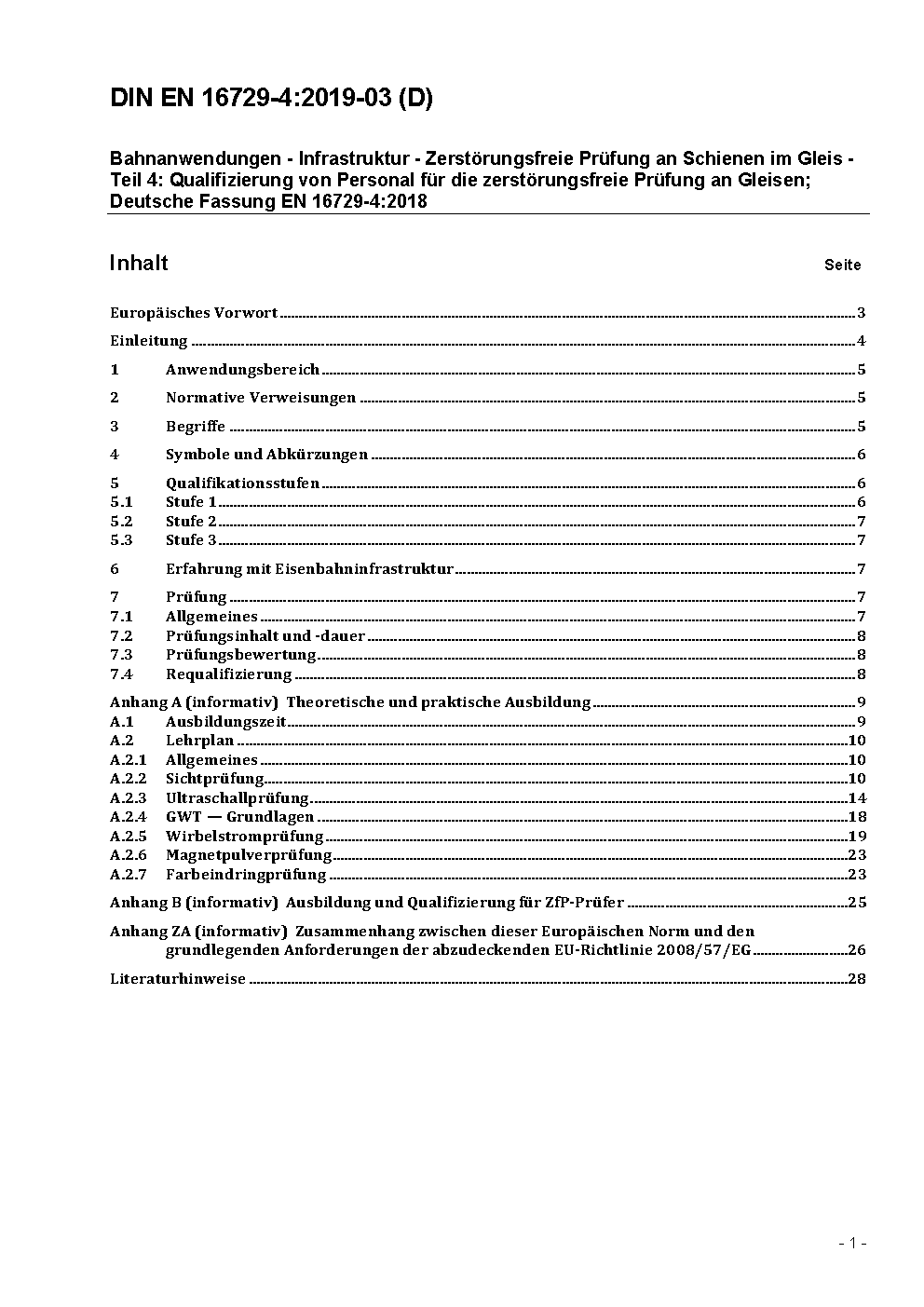 Bahnanwendungen - Infrastruktur - Zerstörungsfreie Prüfung an Schienen im Gleis - Teil 4: Qualifizierung von Personal für die zerstörungsfreie Prüfung; Deutsche und Englische Fassung prEN 16729-4:2017