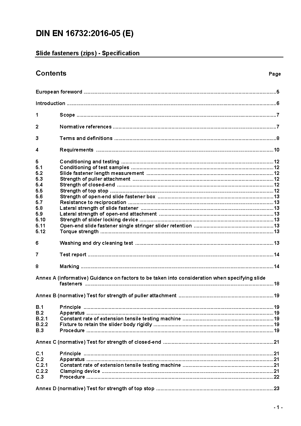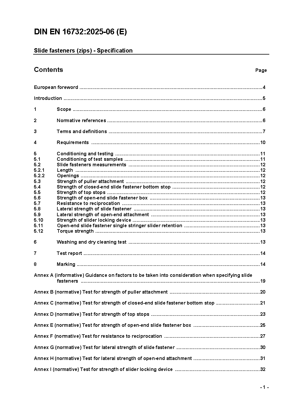 Slide fasteners (zips) - Specification; German and English version prEN 16732:2024