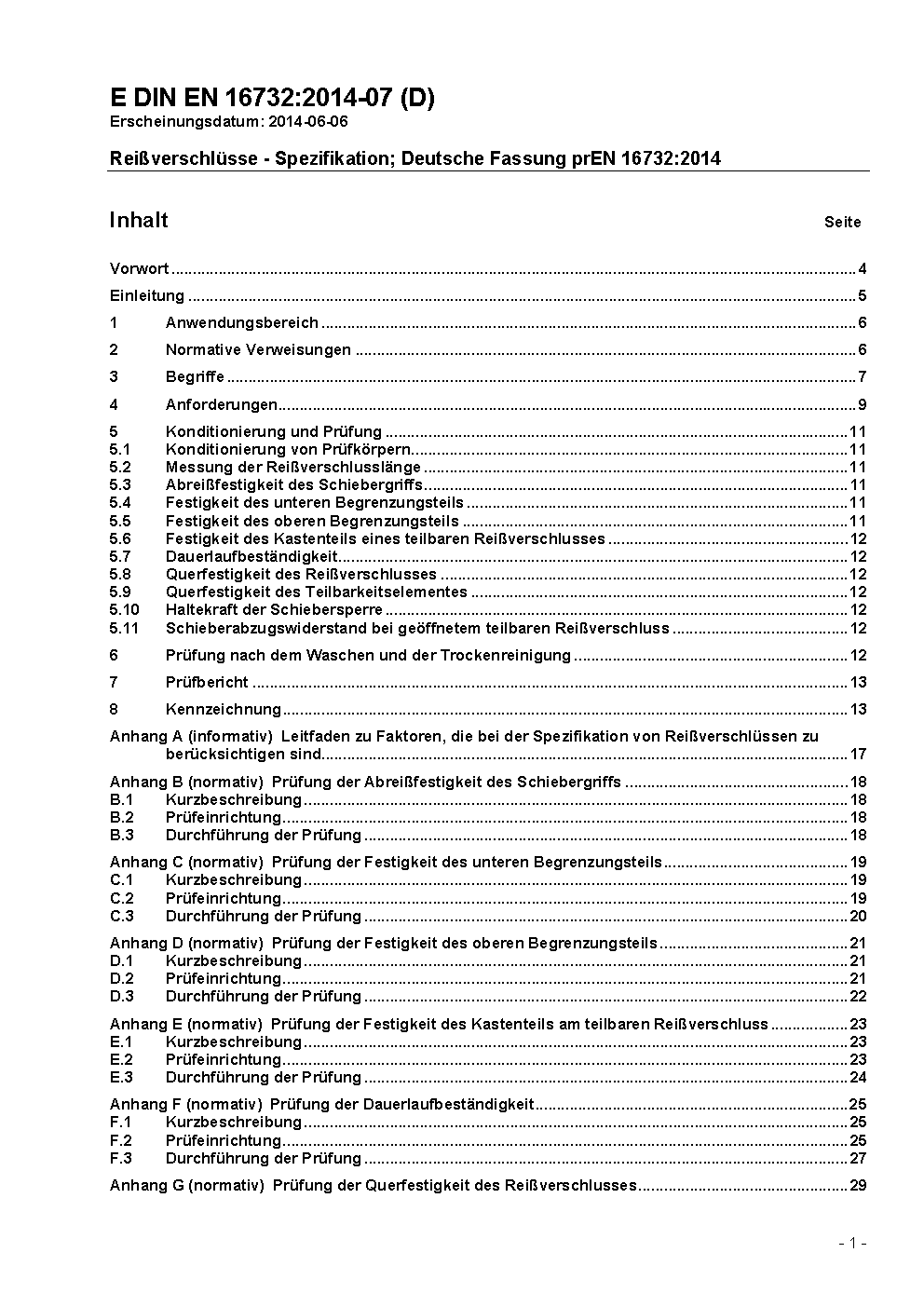 Reißverschlüsse - Spezifikation; Deutsche und Englische Fassung prEN 16732:2024