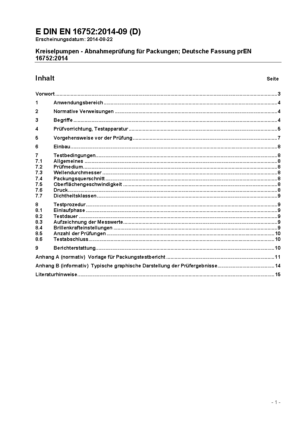 Kreiselpumpen - Abnahmeprüfung für Packungen; Deutsche Fassung EN 16752:2015