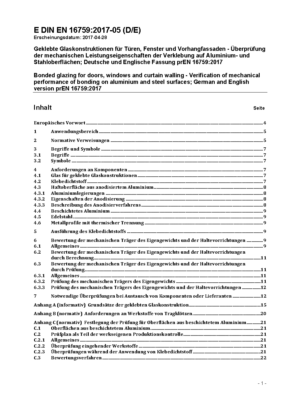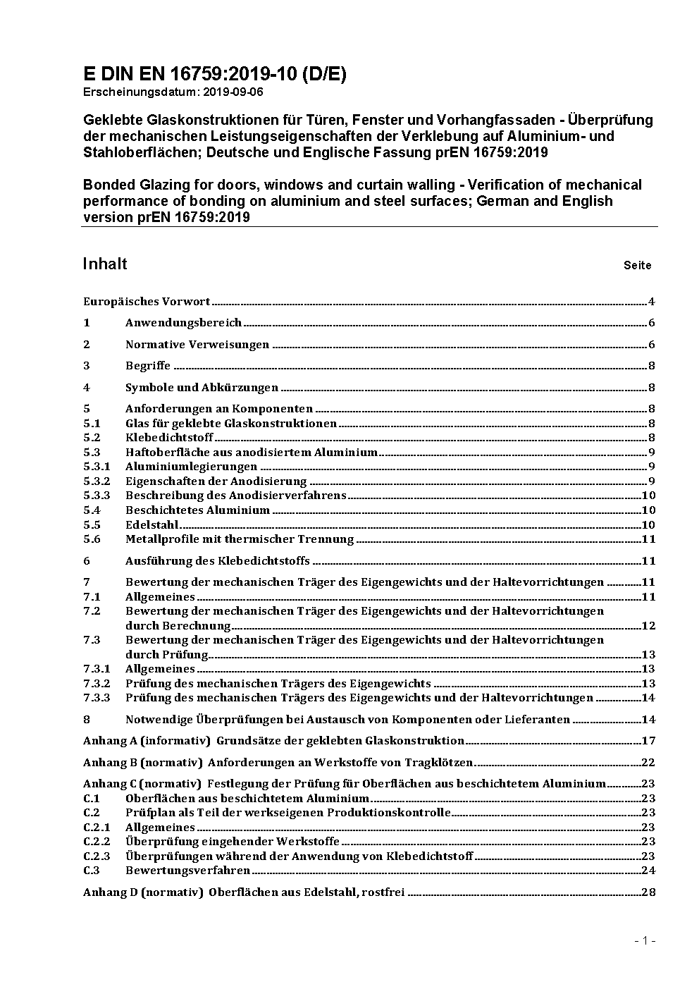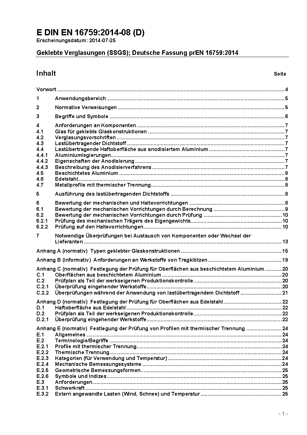 Structural Sealant Glazing Systems (SSGS); German Version prEN 16759:2014