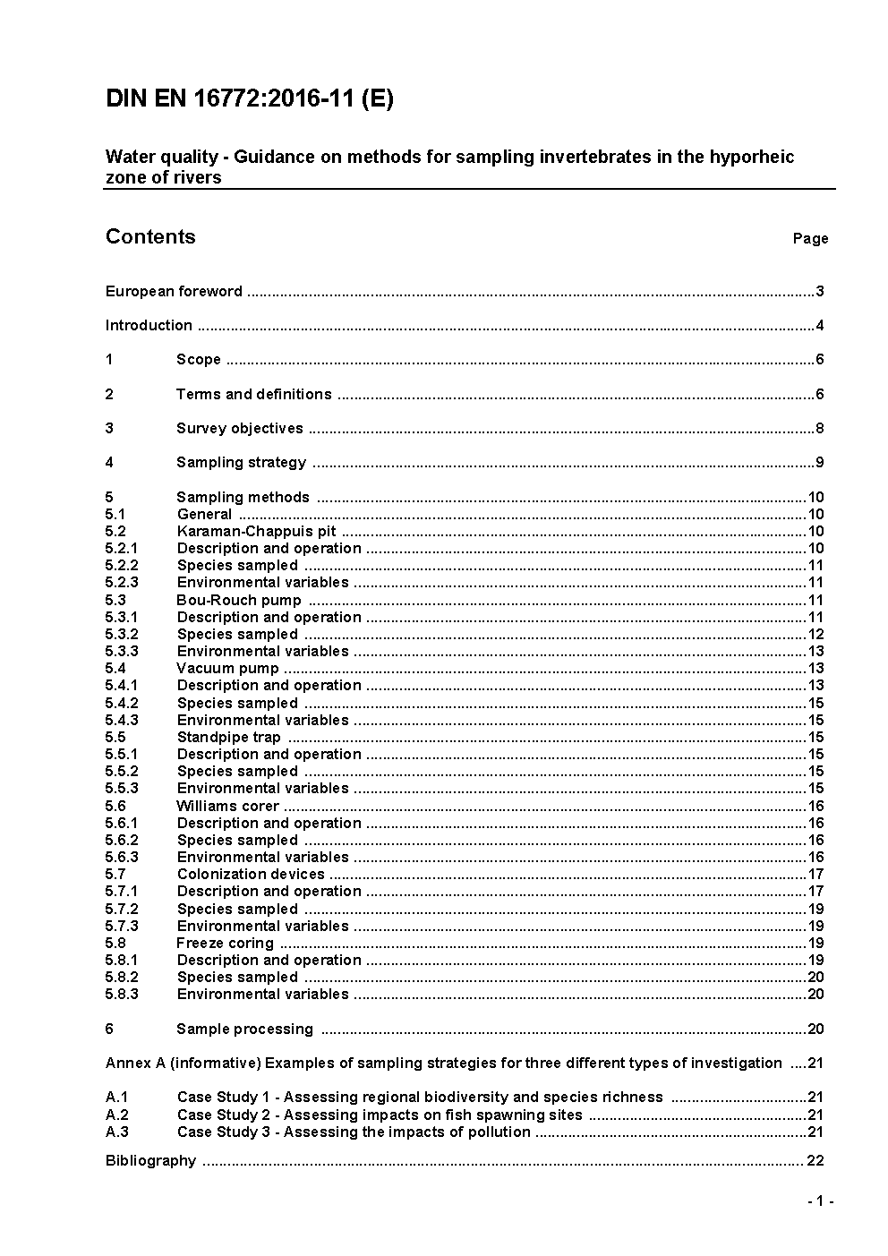 Water quality - Guidance on methods for sampling invertebrates in the hyporheic zone of rivers; German version prEN 16772:2014