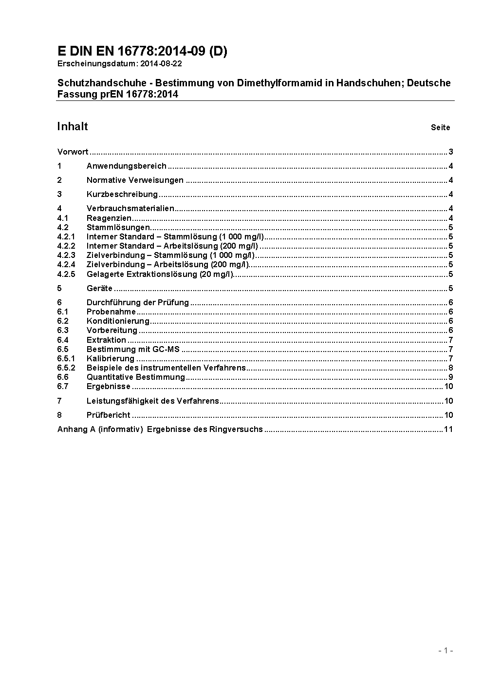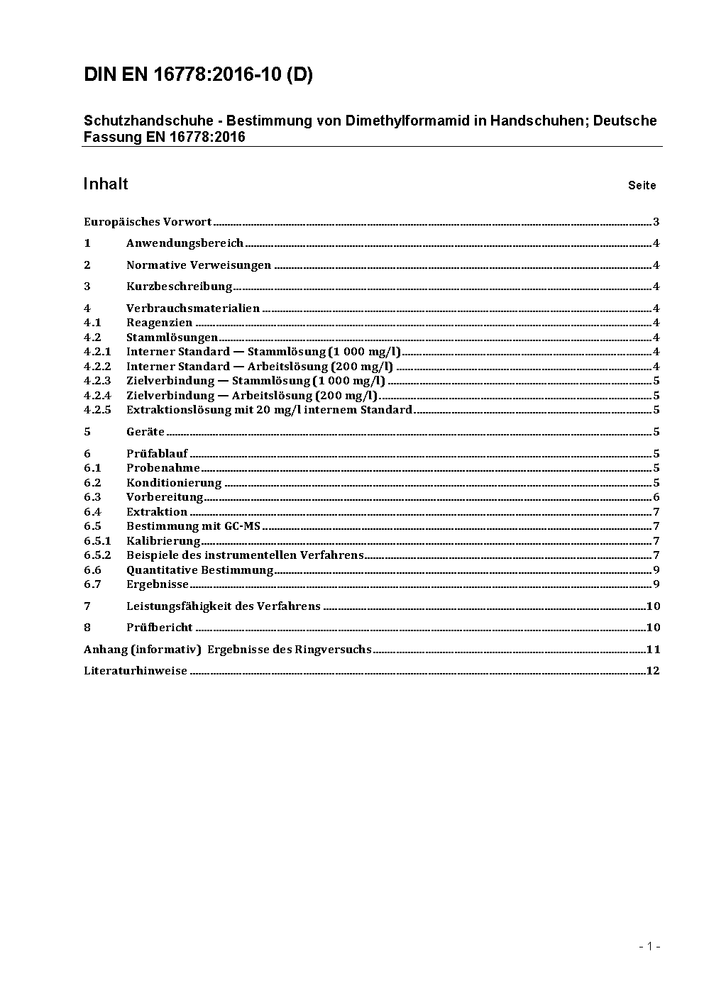 Protective gloves - The determination of Dimethylformamide in gloves; German version EN 16778:2016