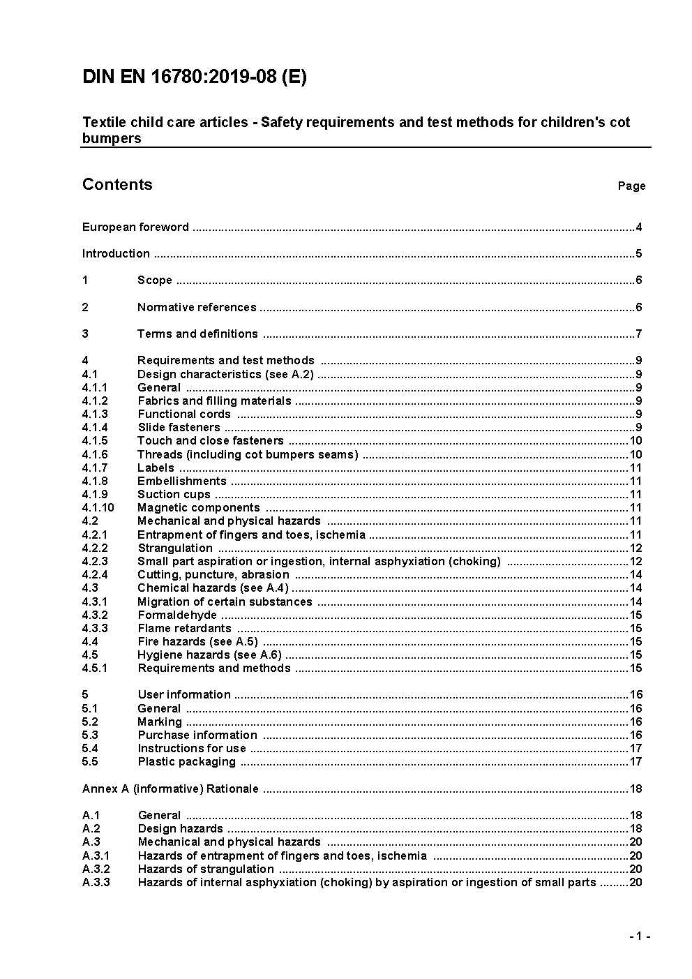 Textile child care articles - Safety requirements and test methods for children's cot bumpers; German version EN 16780:2018