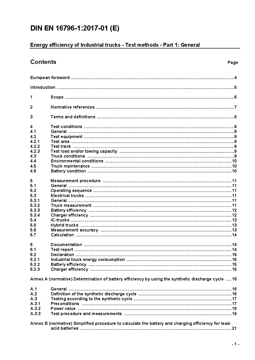 Energy efficiency of industrial trucks - Test methods - Part 1: General; German version prEN 16796-1:2014