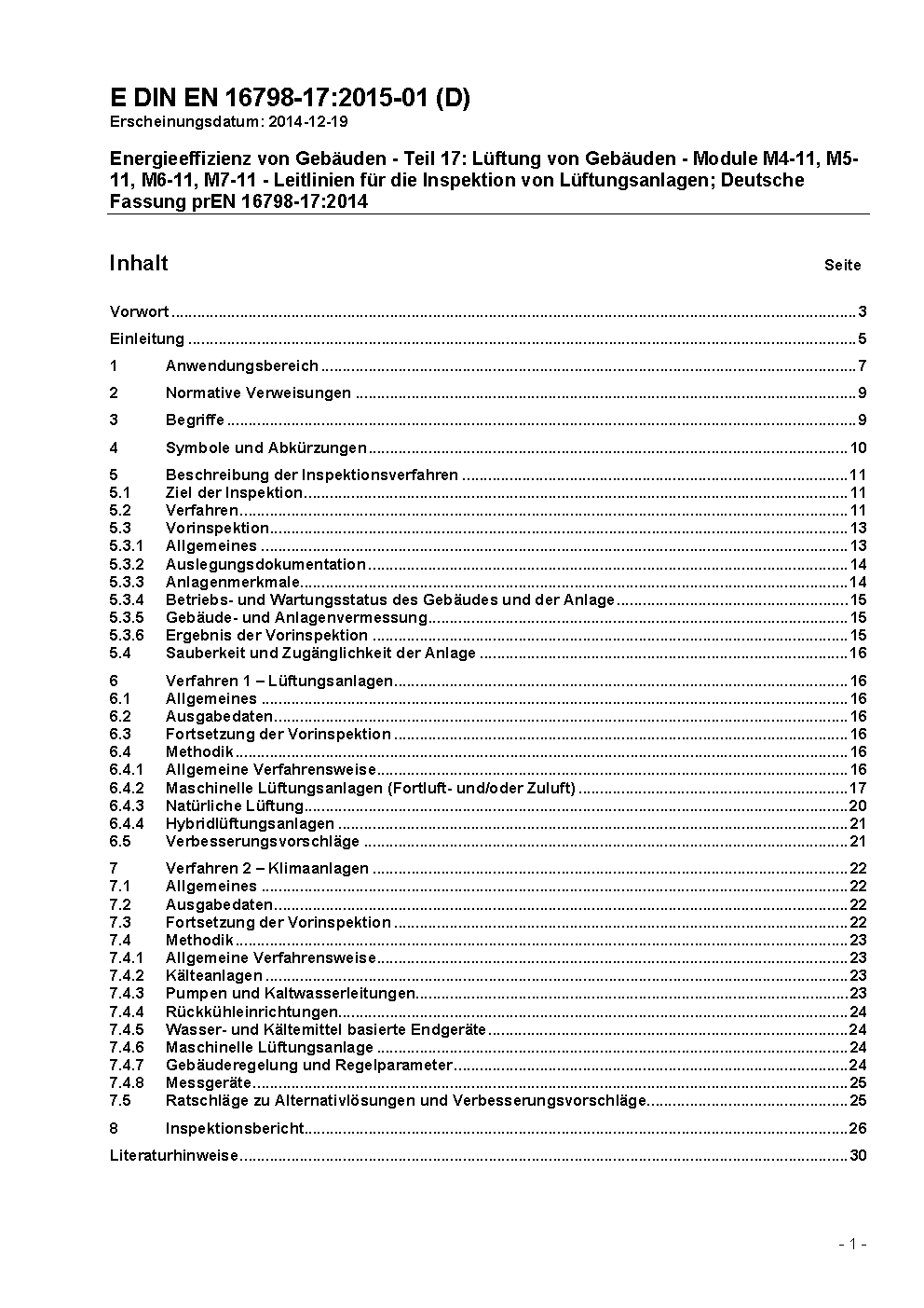 Energy performance of buildings - Ventilation for buildings - Part 17: Guidelines for inspection of ventilation and air conditioning systems (Module M4-11, M5-11, M6-11, M7-11); German version EN 16798-17:2017