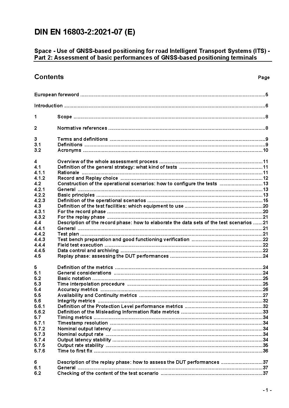 Space - Use of GNSS-based positioning for road Intelligent Transport Systems (ITS) - Part 2: Assessment of basic performances of GNSS-based positioning terminals; German and English version prEN 16803-2:2019