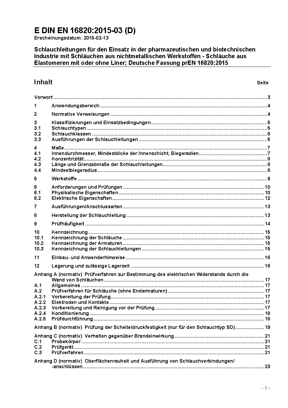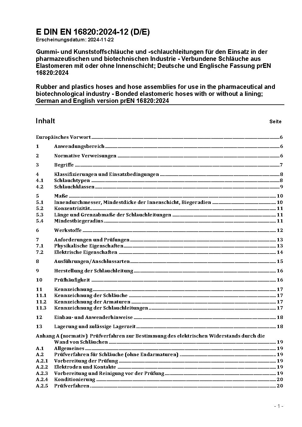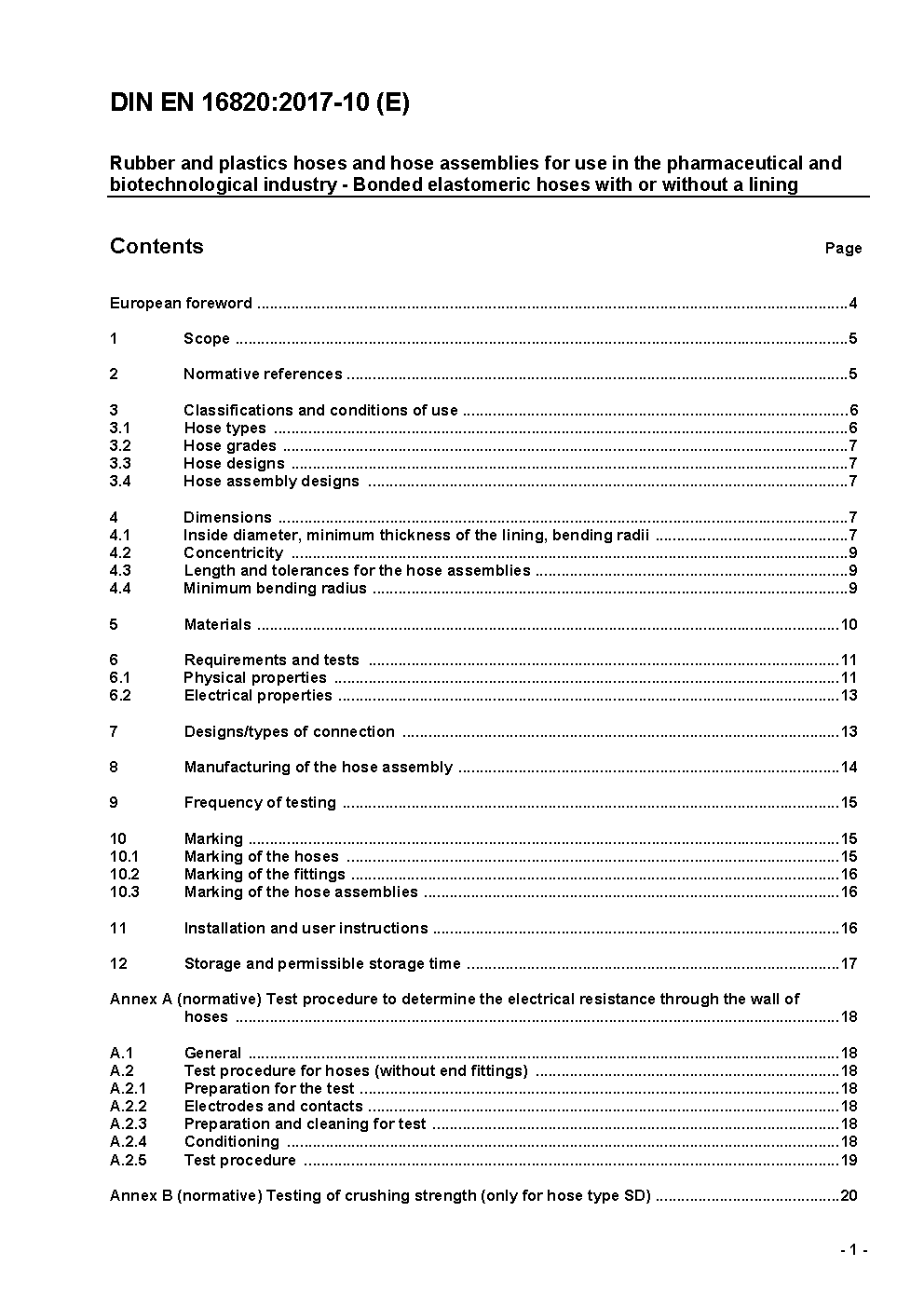 Rubber and plastics hoses and hose assemblies for use in the pharmaceutical and biotechnological industry - Bonded elastomeric hoses with or without a lining; German version EN 16820:2017