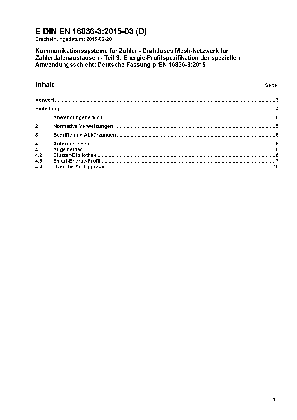 Kommunikationssysteme für Zähler - Drahtloses Mesh-Netzwerk für den Zählerdatenaustausch - Teil 3: Energie-Profilspezifikation der speziellen Anwendungsschicht; Deutsche Fassung EN 16836-3:2016