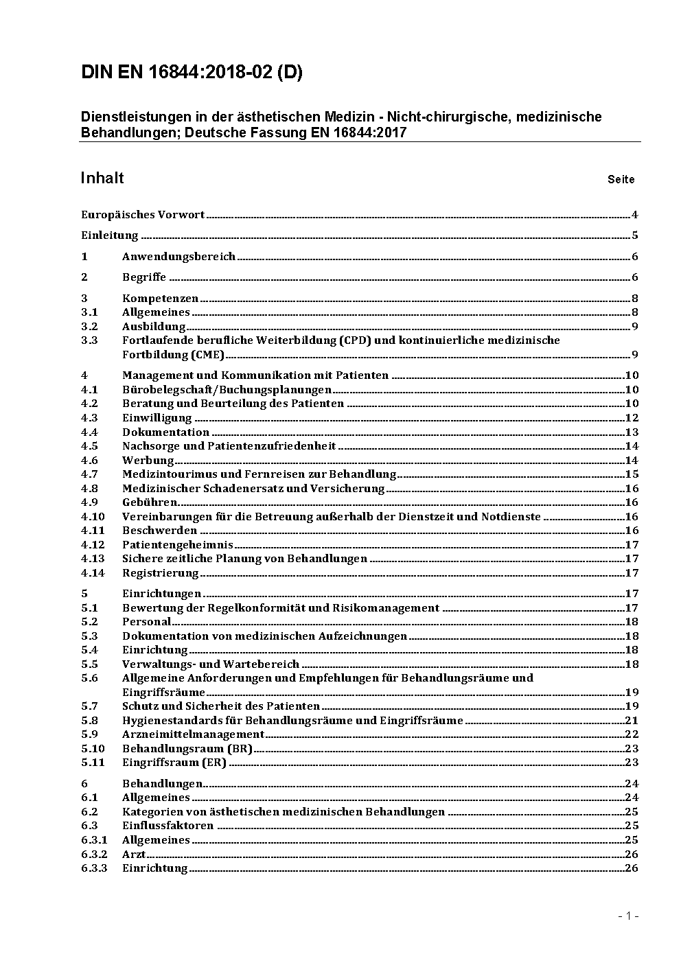 Aesthetic medicine services - Non-surgical medical treatments; German version EN 16844:2017+A1:2018
