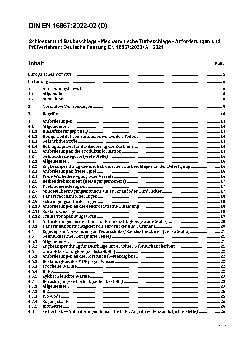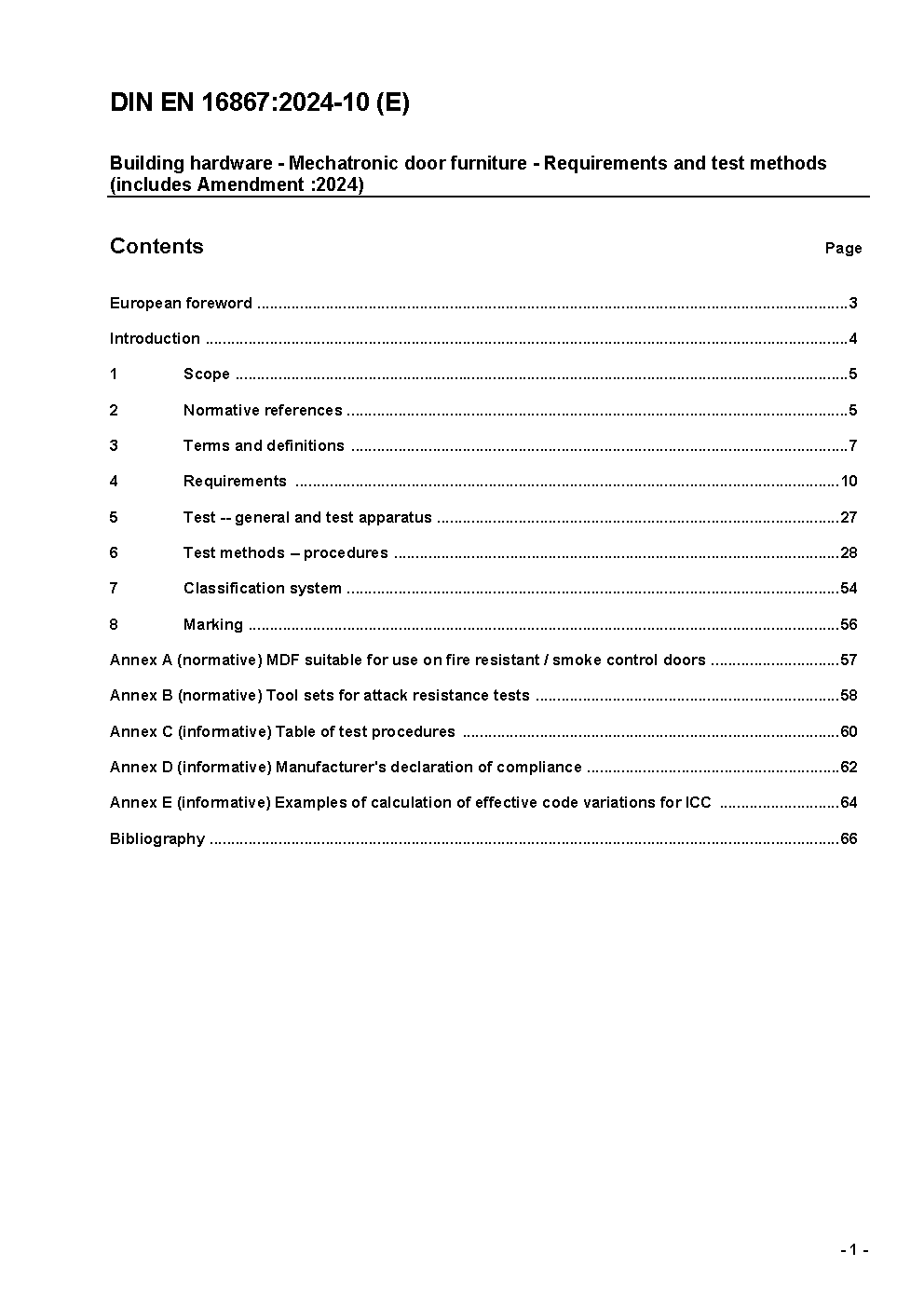 Building hardware - Mechatronic door furniture - Requirements and test methods; German and English version prEN 16867:2015