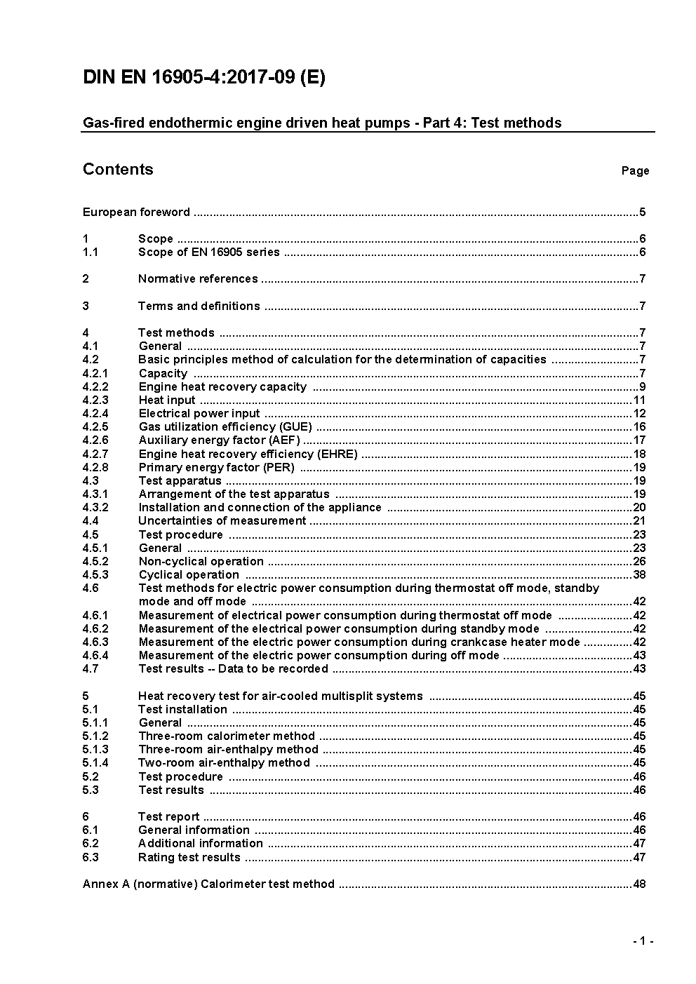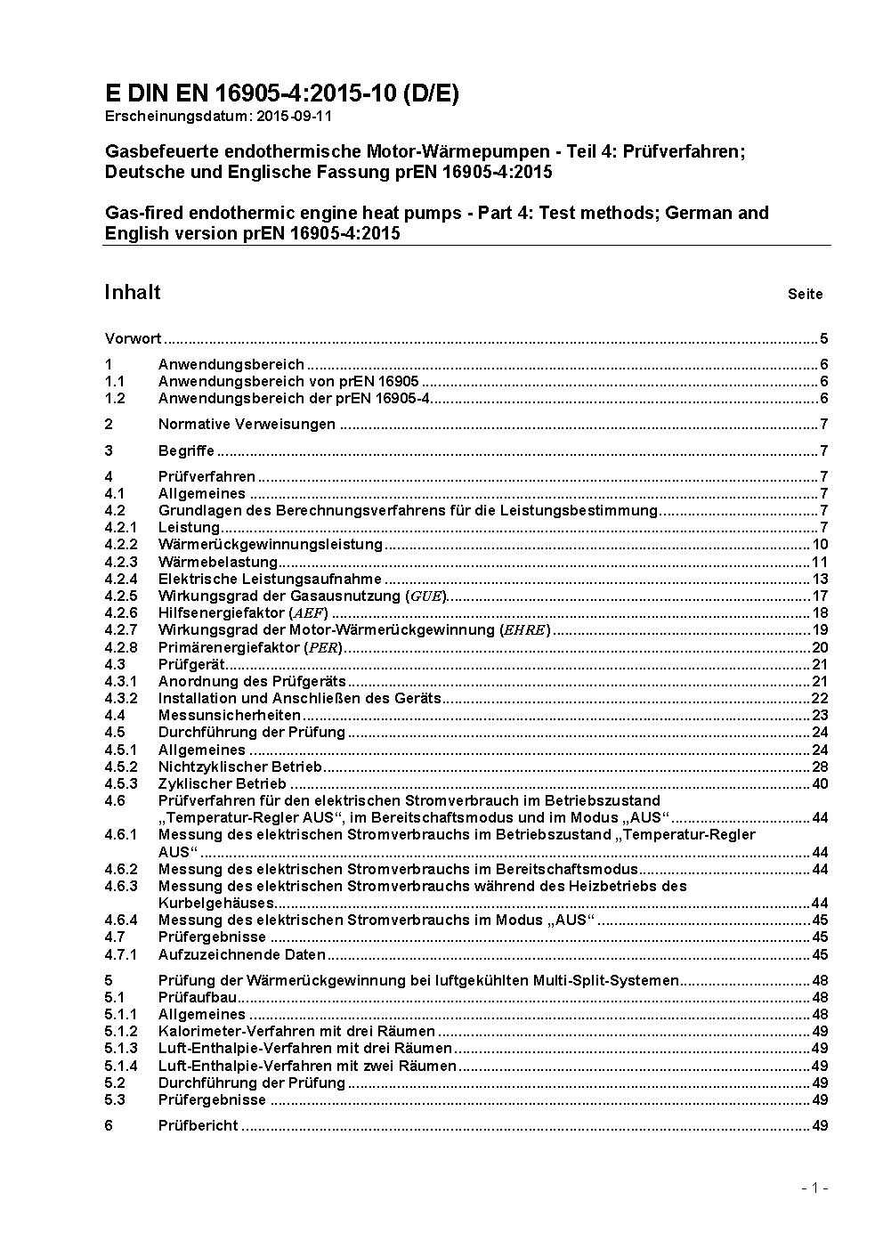 Gas-fired endothermic engine driven heat pumps - Part 4: Test methods; German version EN 16905-4:2017.