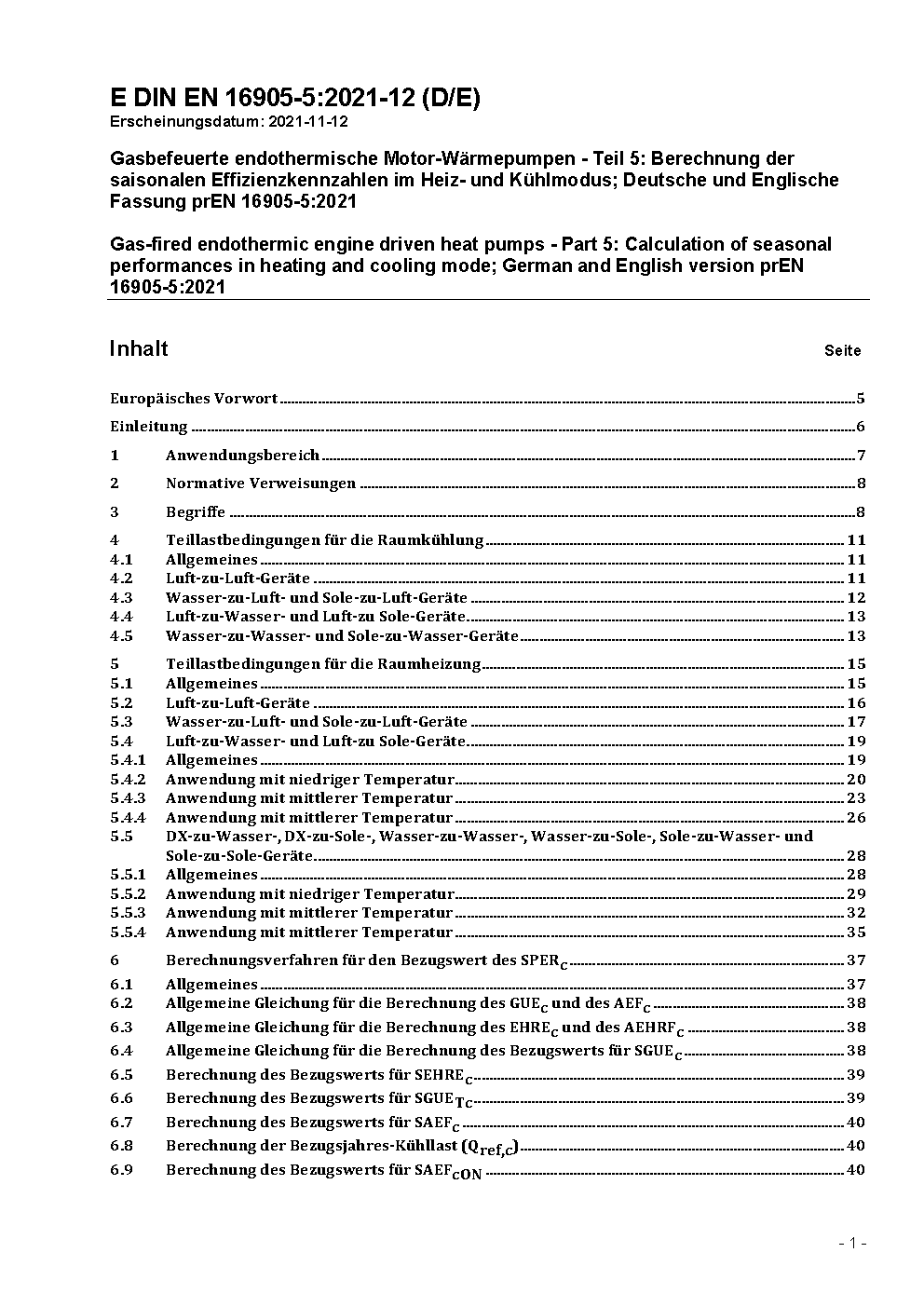 Gas-fired endothermic engine driven heat pumps - Part 5: Calculation of seasonal performances in heating and cooling mode; German version EN 16905-5:2017.