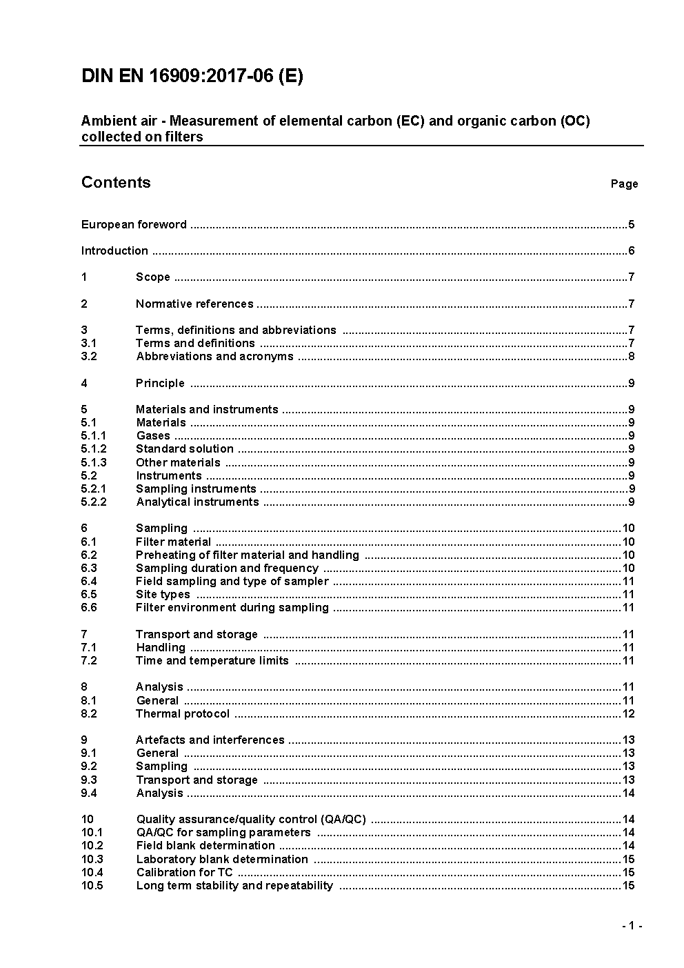 Ambient air - Measurement of elemental carbon (EC) and organic carbon (OC) collected on filters; German version EN 16909:2017