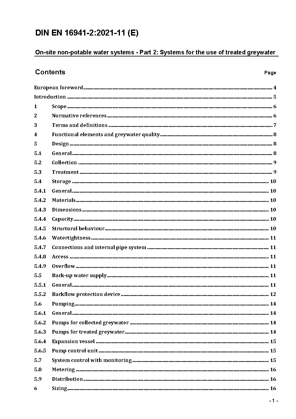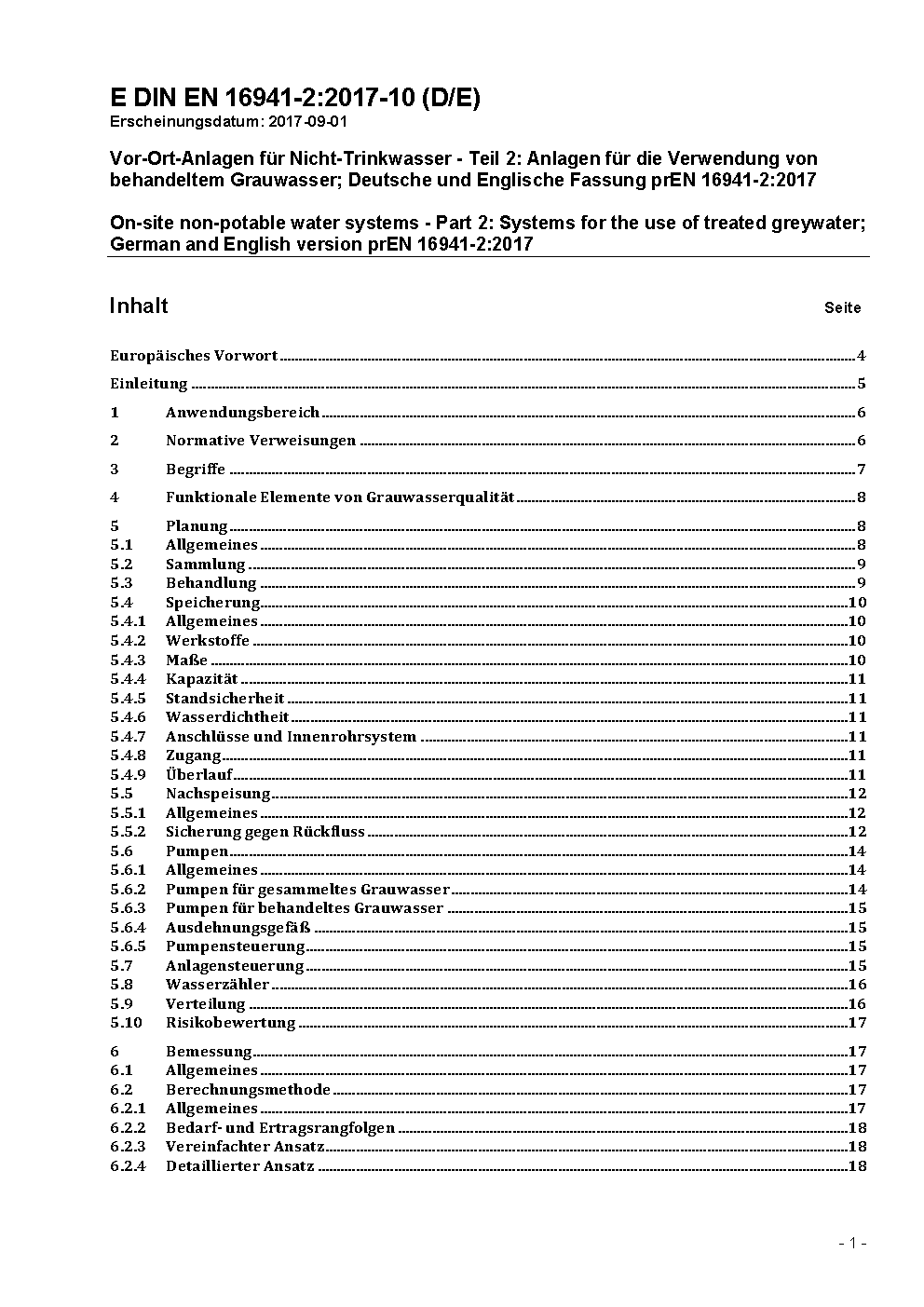 Vor-Ort-Anlagen für Nicht-Trinkwasser - Teil 2: Anlagen für die Verwendung von behandeltem Grauwasser; Deutsche Fassung EN 16941-2:2021