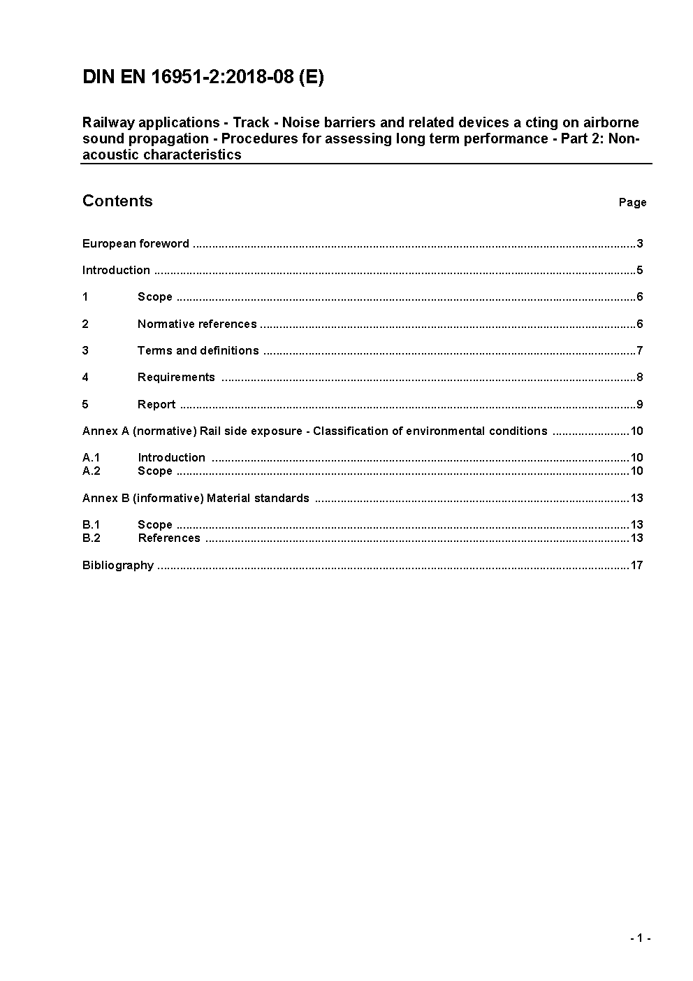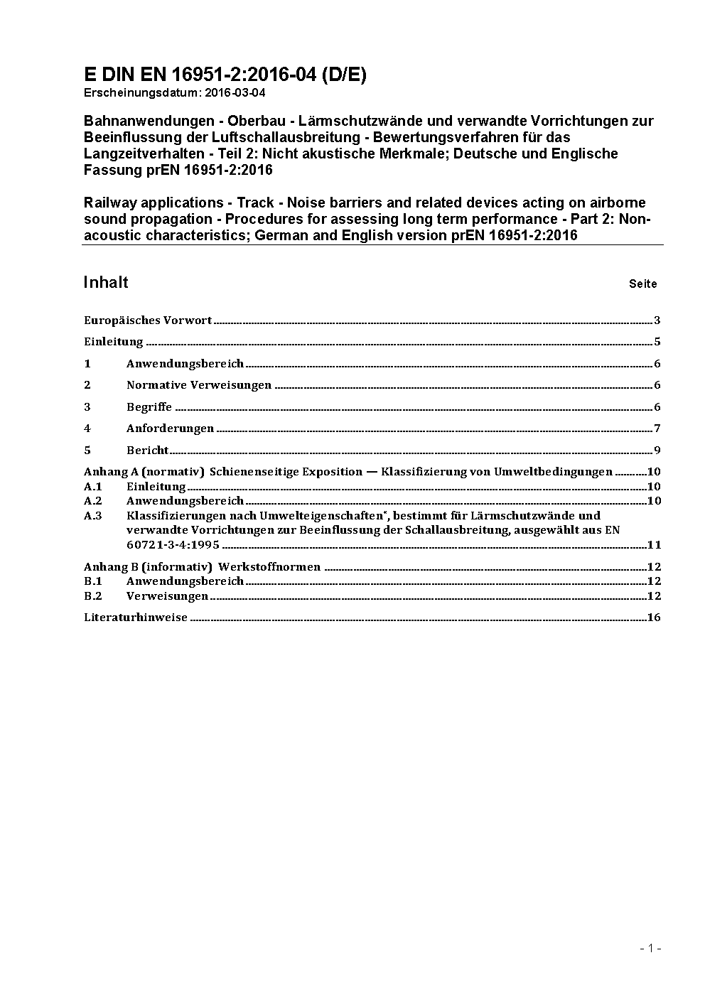 Bahnanwendungen - Oberbau - Lärmschutzwände und verwandte Vorrichtungen zur Beeinflussung der Luftschallausbreitung - Bewertungsverfahren für das Langzeitverhalten - Teil 2: Nicht akustische Merkmale; Deutsche Fassung EN 16951-2:2018