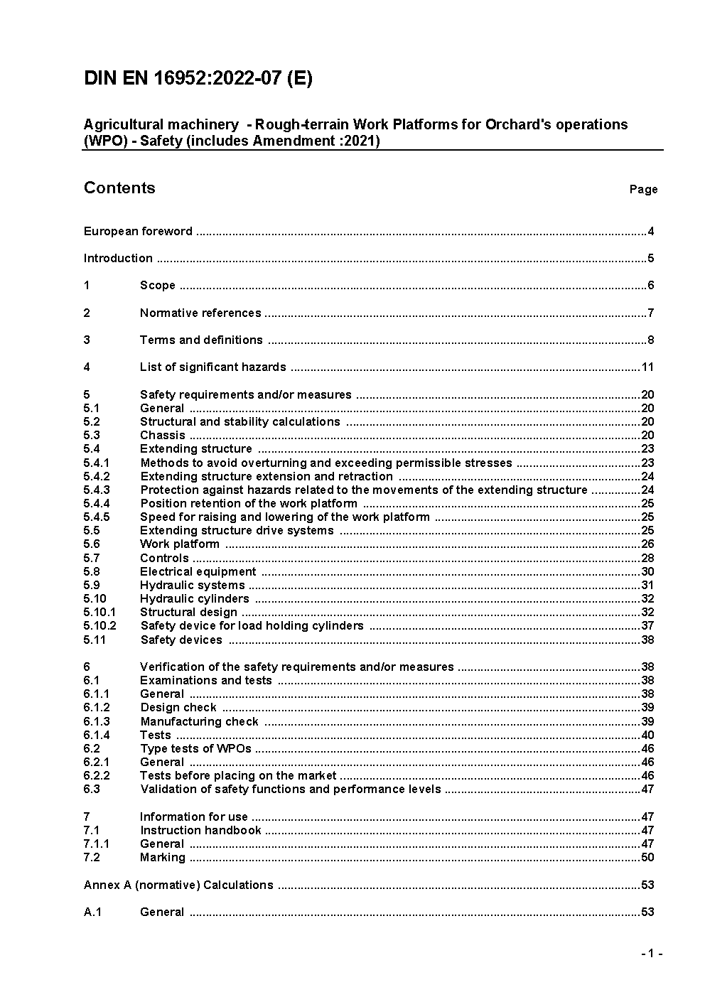 Agricultural machinery - Rough-terrain Work Platforms for Orchard's operations (WPO) - Safety; German and English version EN 16952:2018/prA1:2020