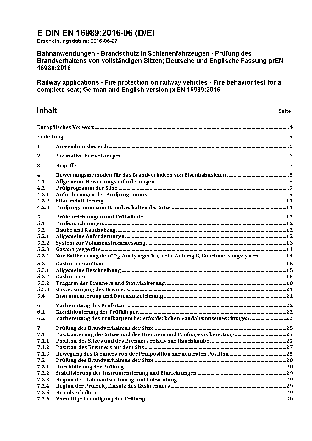 Railway applications - Fire protection on railway vehicles - Fire behaviour test for a complete seat; German version EN 16989:2018