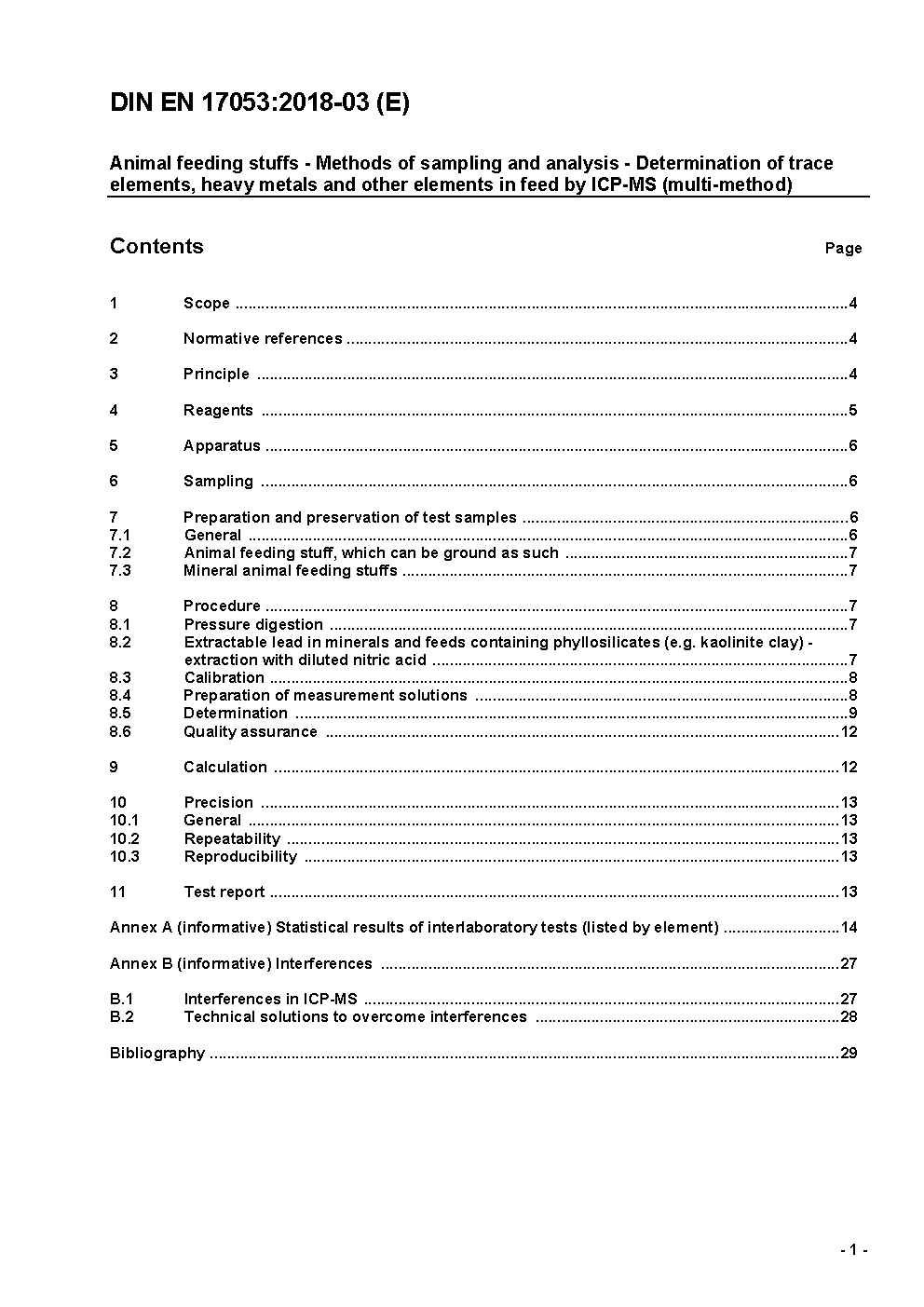 Animal feeding stuffs - Methods of sampling and analysis - Determination of trace elements, heavy metals and other elements in feed by ICP-MS (multi-method); German and English version prEN 17053:2016