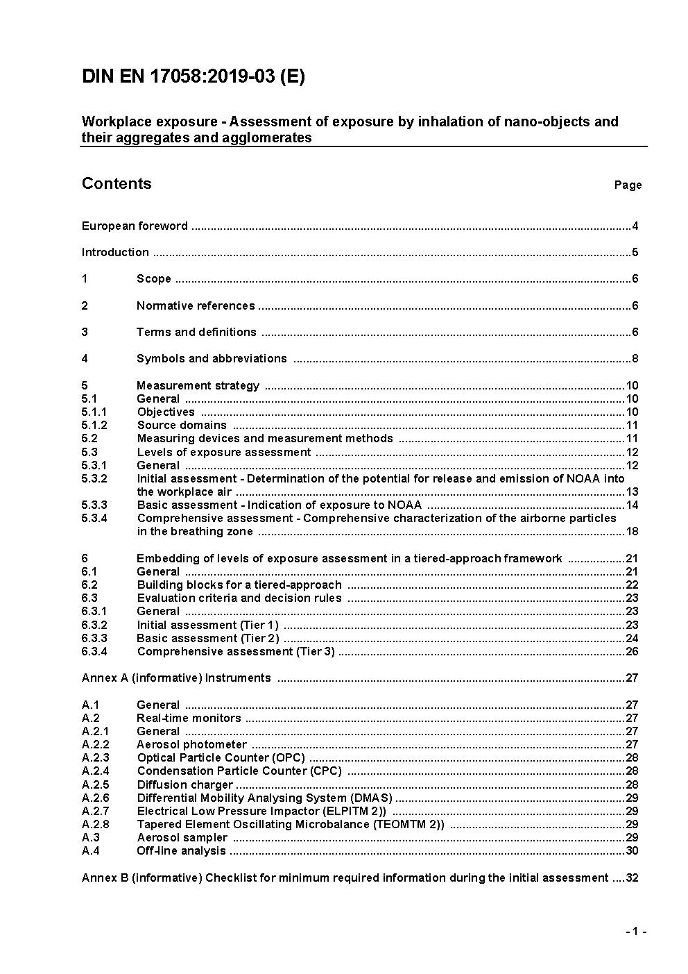 Exposition am Arbeitsplatz - Beurteilung der inhalativen Exposition gegenüber Nano-Objekten und deren Agglomeraten und Aggregaten; Deutsche und Englische Fassung prEN 17058:2016