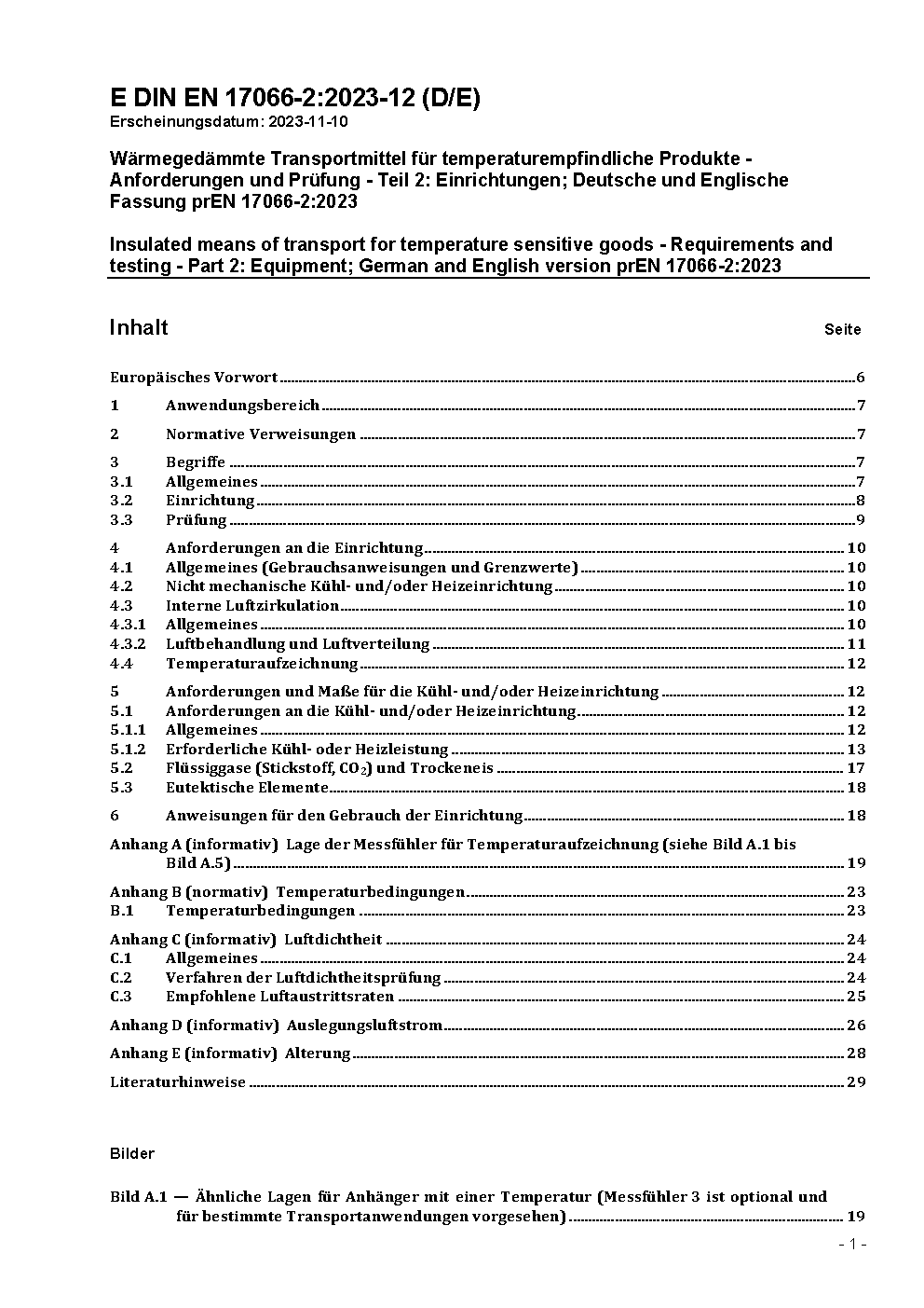 Insulated means of transport for temperature sensitive goods - Requirements and testing - Part 2: Equipment; German and English version prEN 17066-2:2023