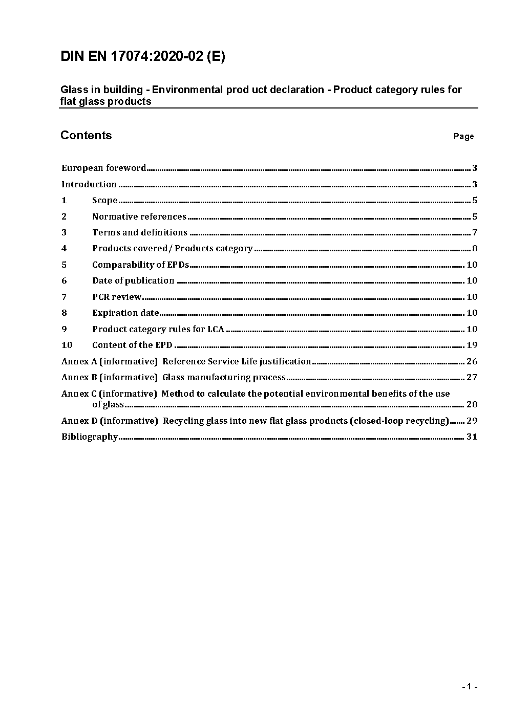Glass in building - Environmental product declaration - Product category rules for flat glass products; German and English version prEN 17074:2017
