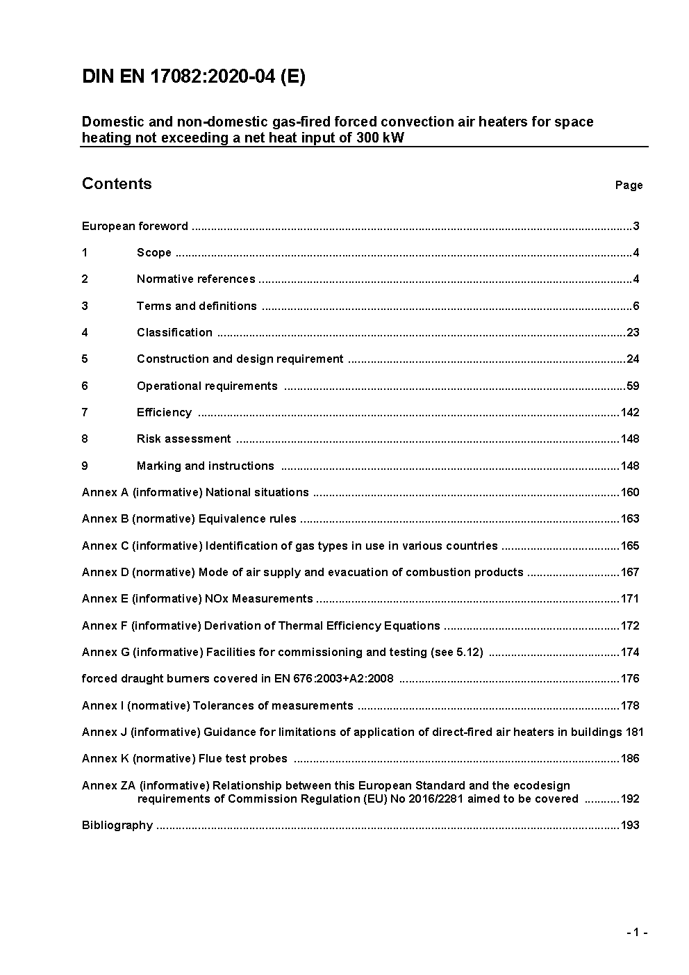 Domestic and non-domestic gas-fired forced convection air heaters for space heating not exceeding a net heat input of 300 kW; German and English version prEN 17082:2017, only on CD-Rom.