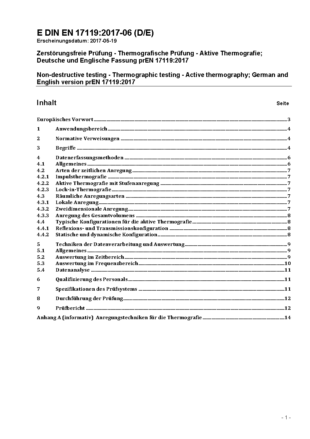 Zerstörungsfreie Prüfung - Thermografische Prüfung - Aktive Thermografie; Deutsche Fassung EN 17119:2018