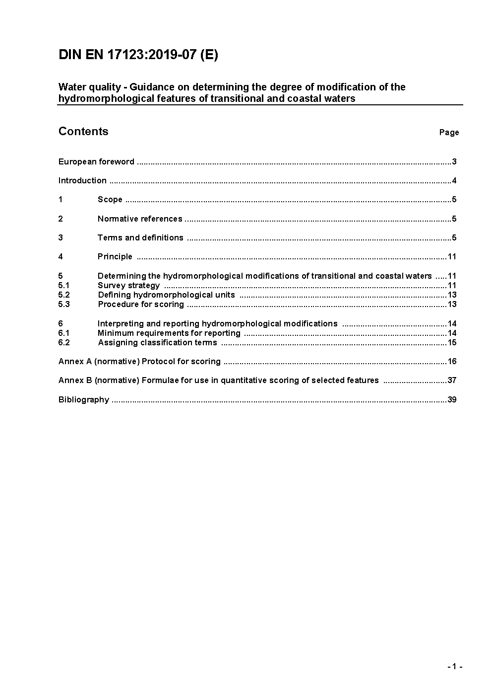 Water quality - Guidance on determining the degree of modification of the hydromorphological features of transitional and coastal waters; German version EN 17123:2018