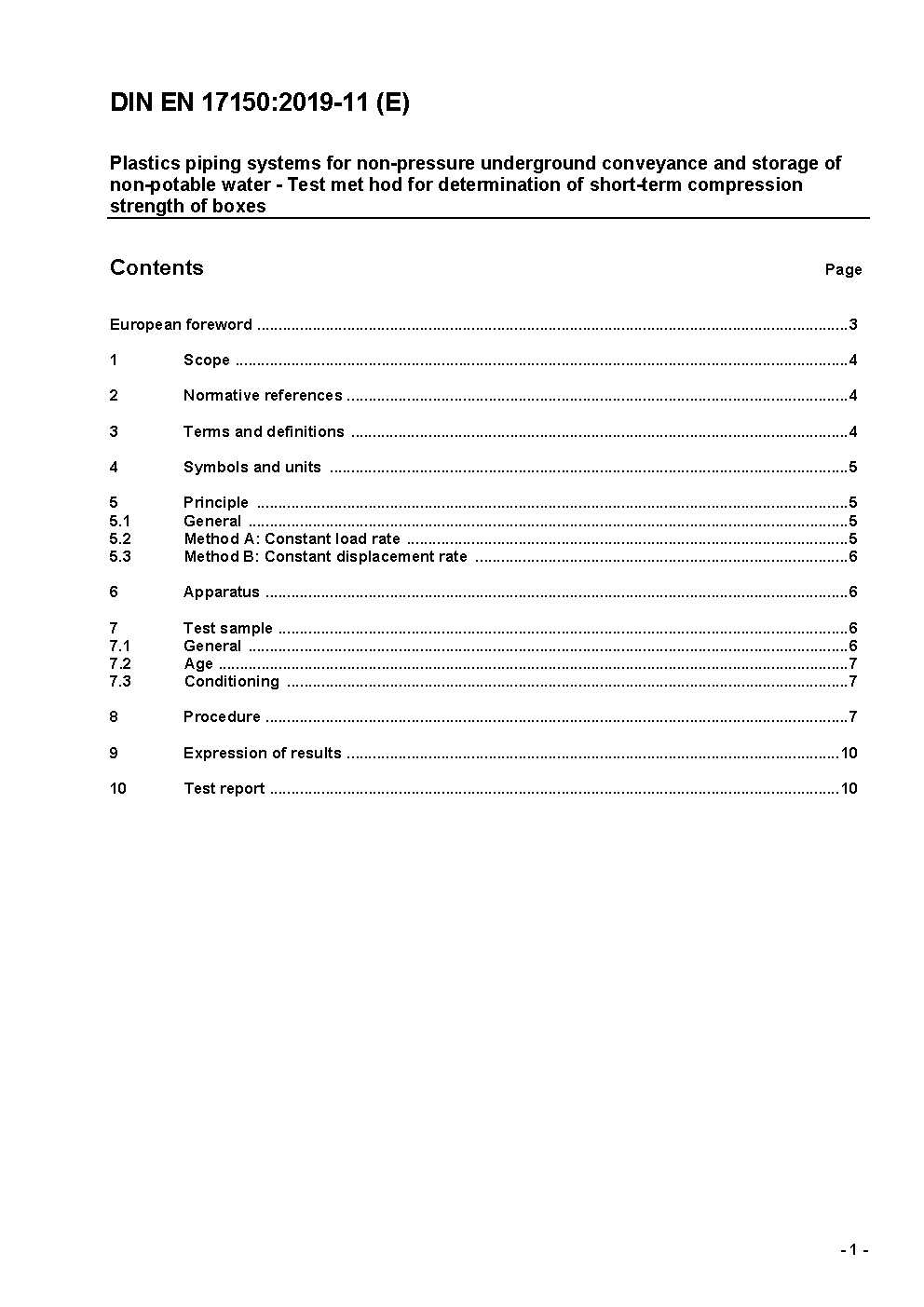 Plastics piping systems for non-pressure underground conveyance and storage of non-potable water - Test method for determination of short term compression strength of boxes; German and English version prEN 17150:2017